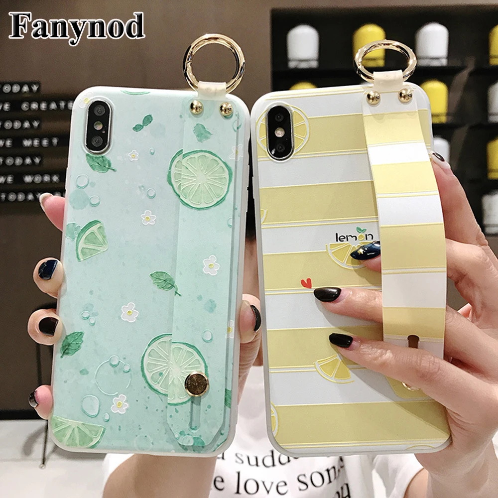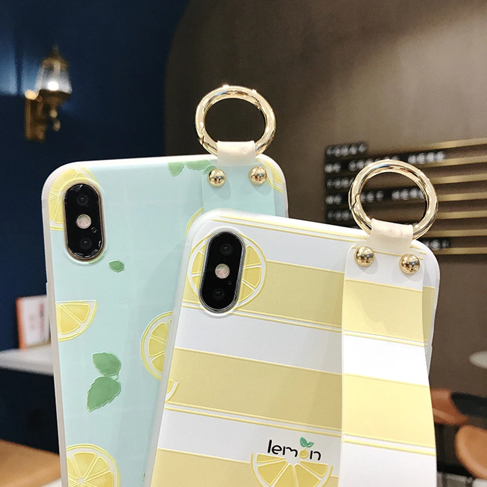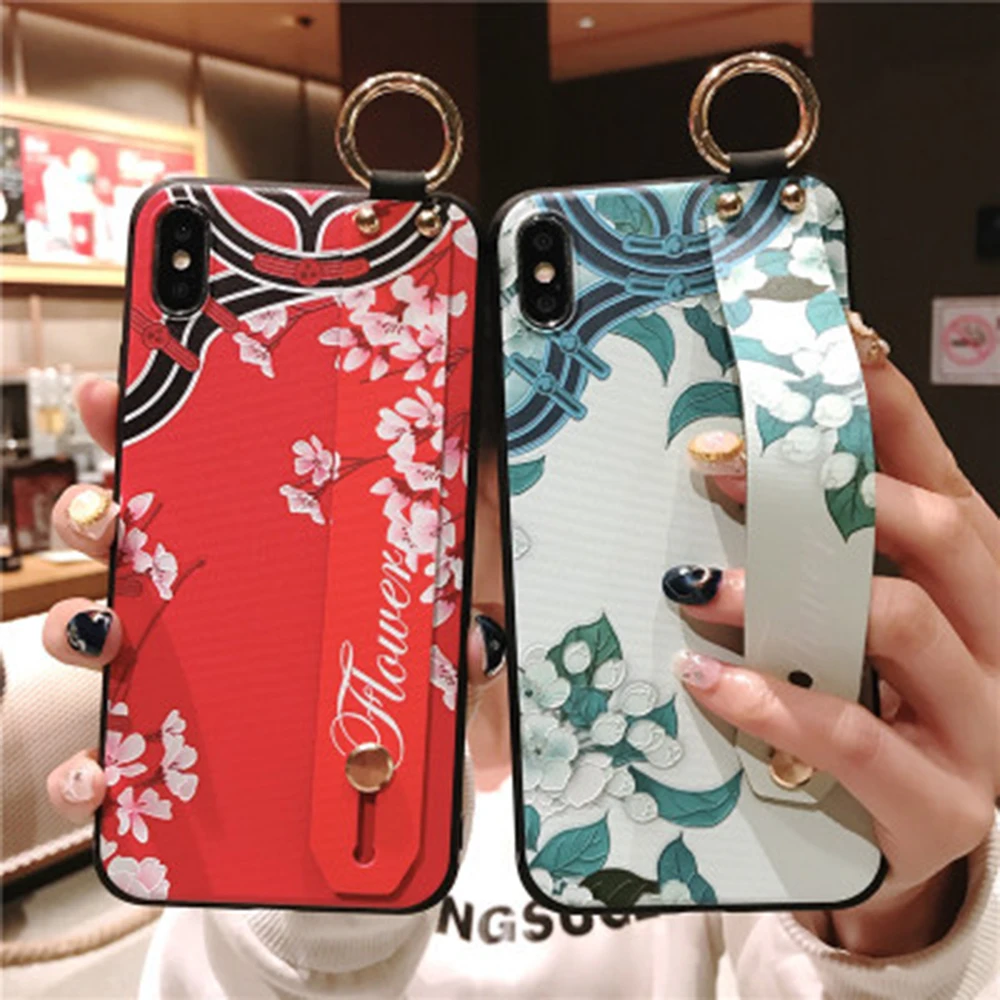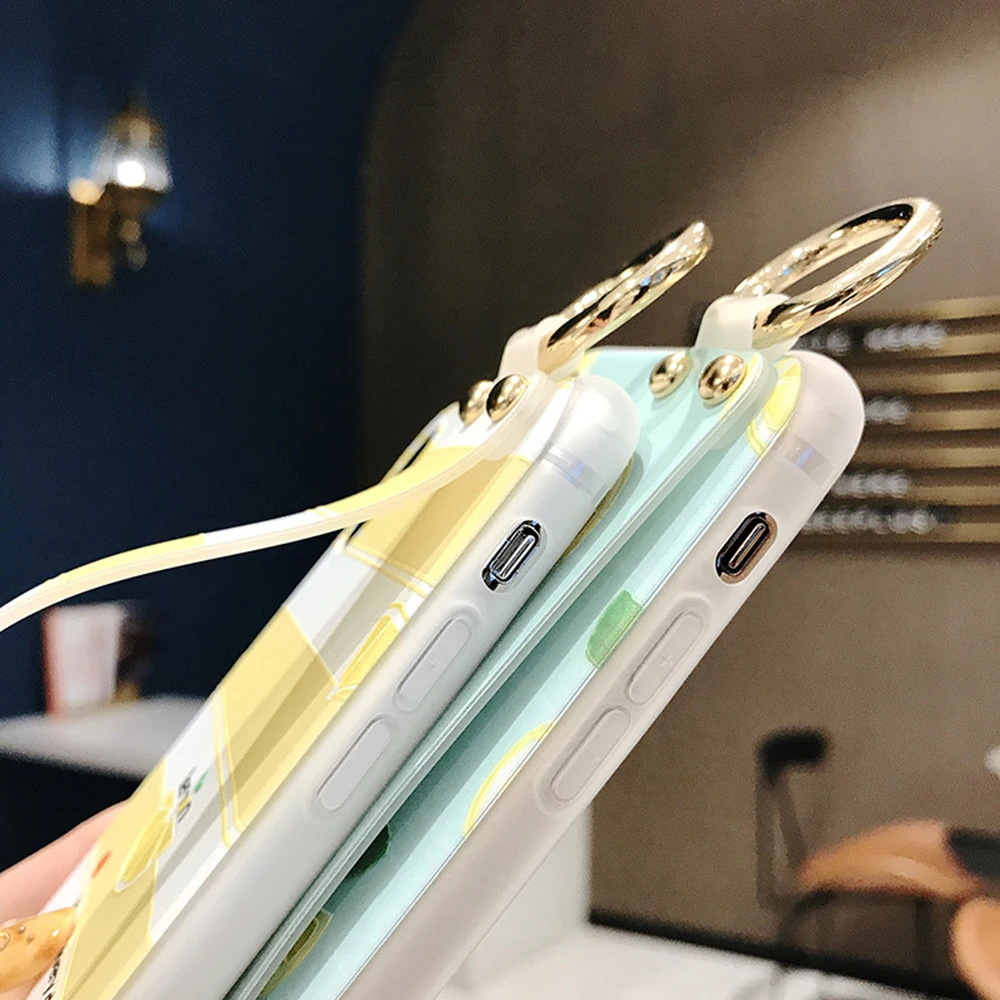 Luxury Wrist Strap Phone Cover For iPhone 11 Pro Max Cases Kickstand Flower Fruit Stripe For iPhone 11 X XR XS Max 8 7 6 6s Plus Fundas Para Carcasas Coque