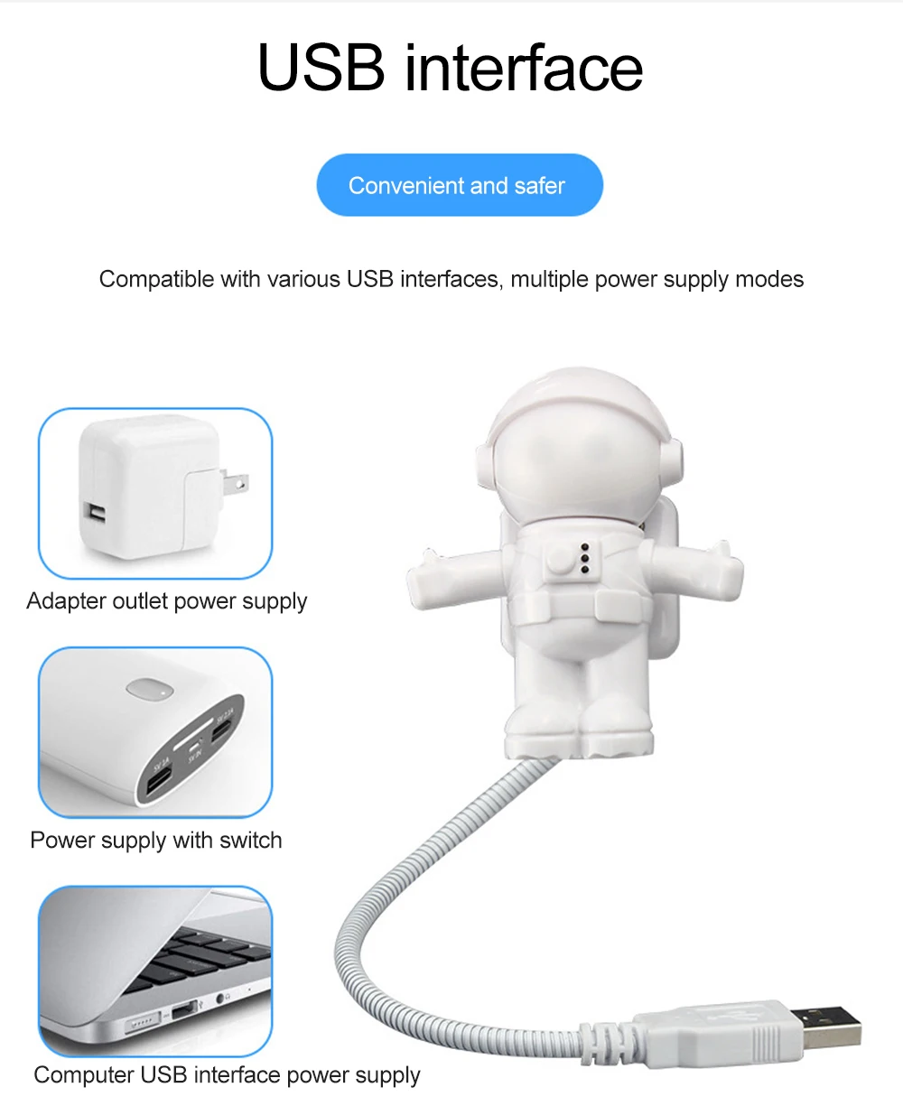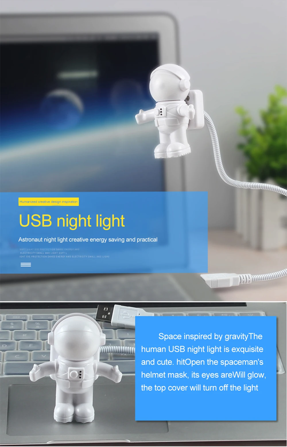 Пространство вдохновлено гравитацией. Человеческая USB ночь изысканная и милая. Откройте шлем маска космонавта, ее глаза будут светиться, верхняя крышка выключит светильник.