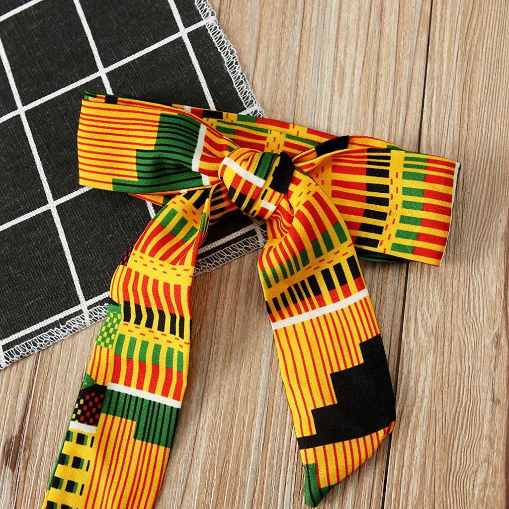 Детский комбинезон с открытыми плечами и принтом в африканском стиле для маленьких девочек; Боди с повязкой на голову; Одежда