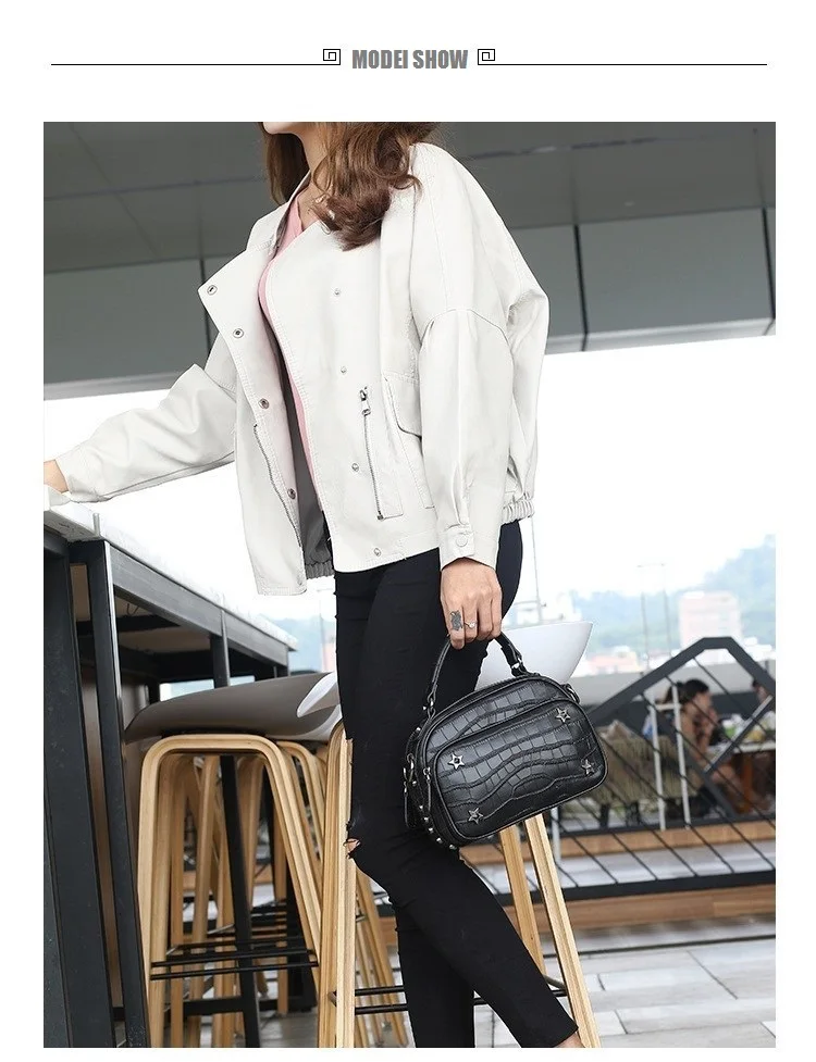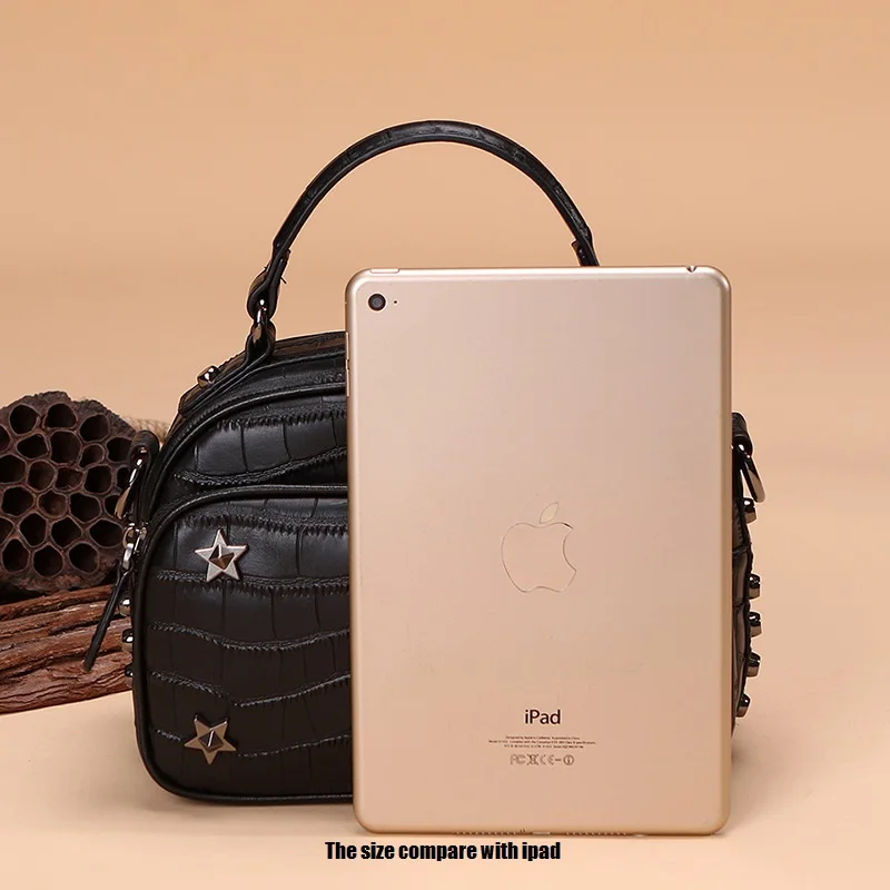 Женская сумка с заклепками роскошная Многофункциональная Кожаная на широком