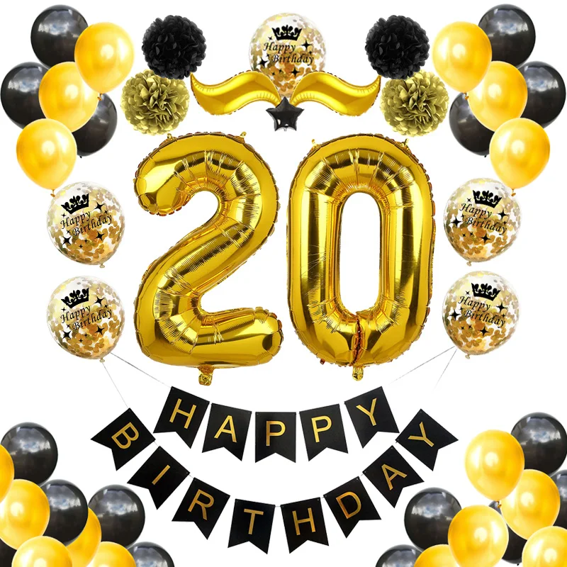 1 Набор С Днем Рождения для взрослых 20th 50th 40th 30th 60th Year Decoration черный золотой баннер