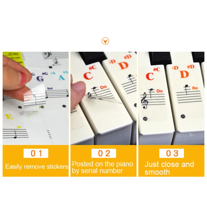 Наклейки для пианино для ключей цветная прозрачная, в форме рояля наклейки на клавиатуру полный набор наклеек многоразовые WHShopping