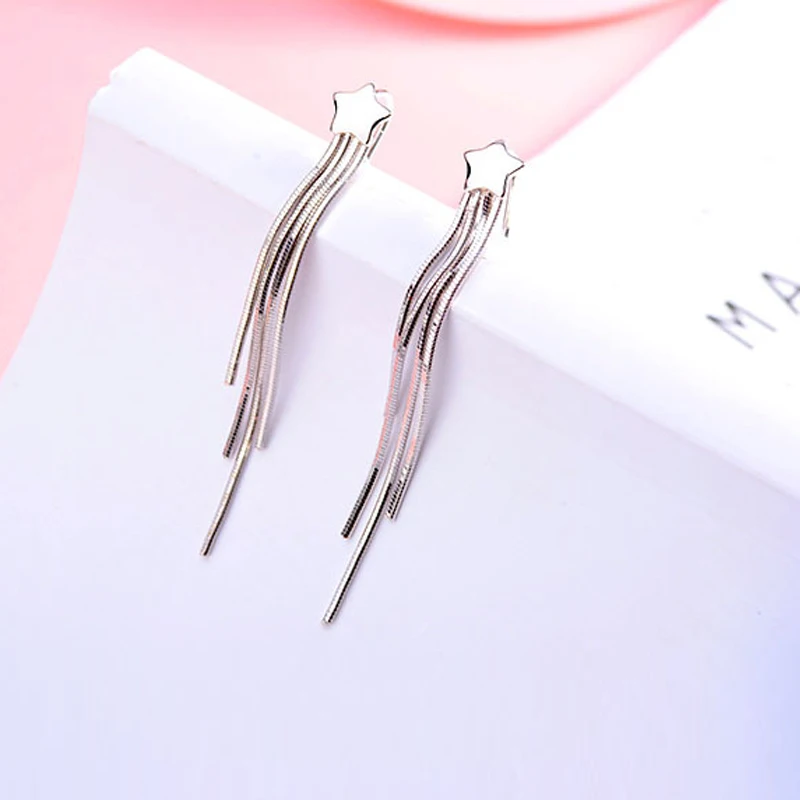 Простые Модные длинные висячие серьги из стерлингового серебра 925 пробы с цепочкой в виде звезды, длинные серьги-подвески с кисточками, ювелирные изделия для женщин Материал: серебро 925 пробы Особенность: высокое качество предотвращает аллергию Состояние: 100% новый бренд Пол: для девушек и девушек