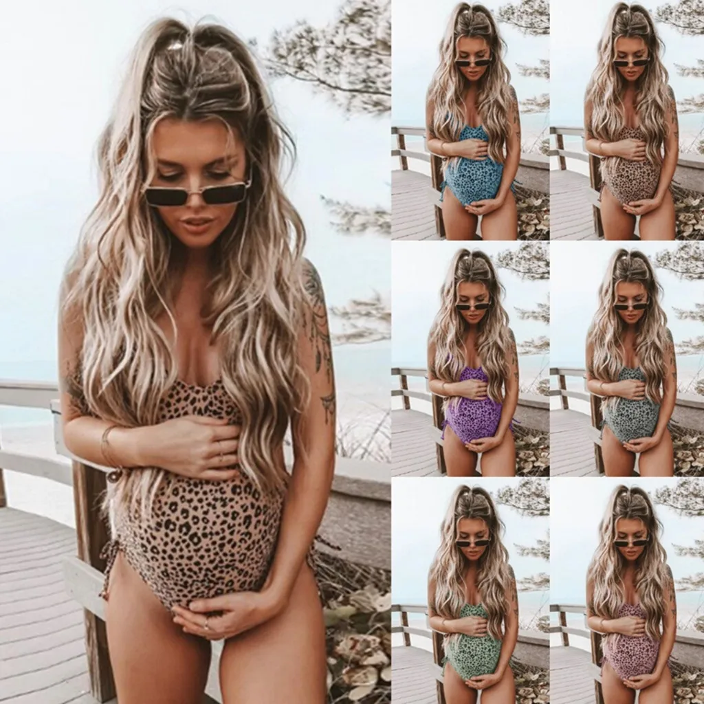 Женский купальник-бикини с леопардовым принтом для беременных, купальный костюм, пляжная одежда