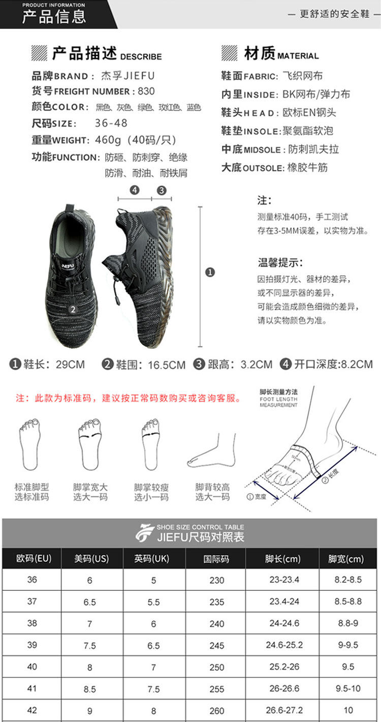 Кроссовки укрепленные для мужчин и женщин дышащие безопасные ботинки со