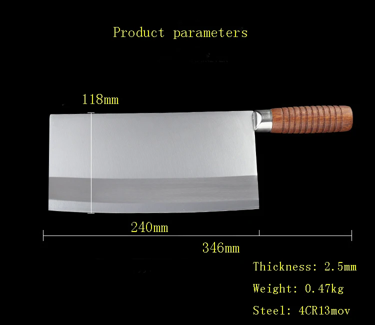 Описание товара Название: кухонный нож для измельчения костей О: Материал лезвия: мартенстическая нержавеющая сталь 4Cr13 Длина ножа: 346 мм Длина лезвия: 240 мм Ширина лезвия: 118 мм Толщина лезвия: 2,5 мм Применение: нарезать мясо, овощи, рыбу и т. Д. Вес: 0,47 кг Упаковка: в коробке B: Материал лезвия: мартенстическая нержавеющая сталь 4Cr13 Длина ножа: 346 мм Длина лезвия: 234 мм Ширина лезвия: 110 мм Толщина лезвия: 2,5 мм Применение: нарезать мясо, овощи, рыбу и т. Д. Вес: 0,42 кг Упаковка: в коробке