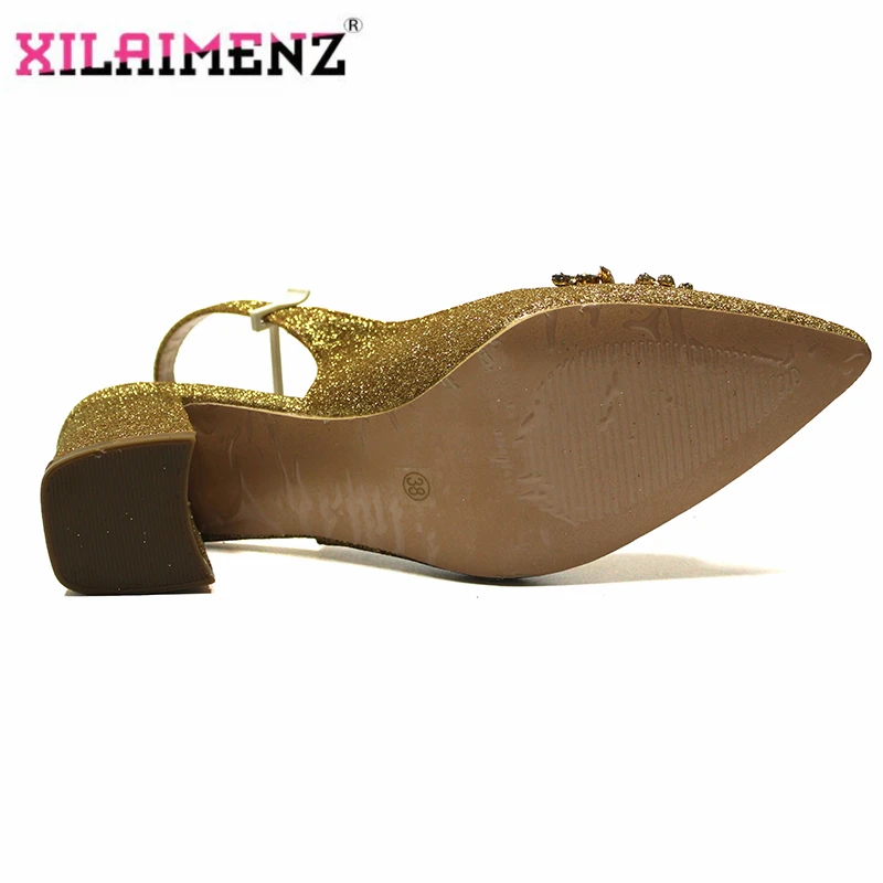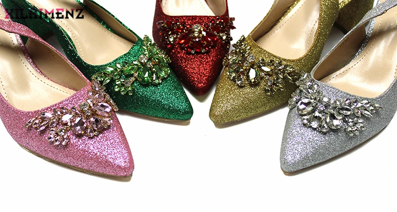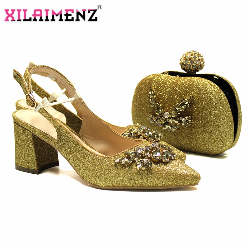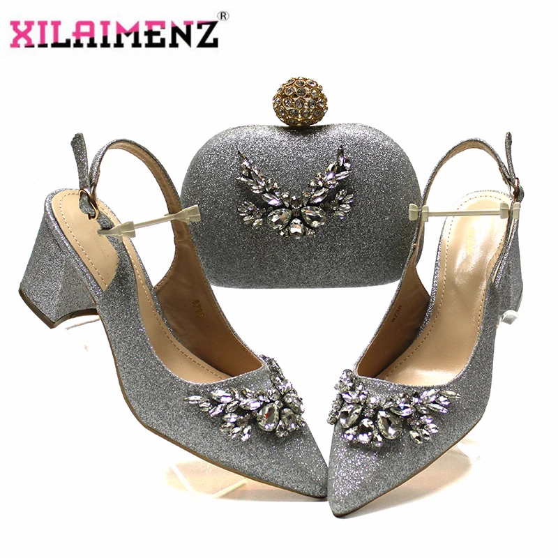 Черный удобный каблук итальянский Женский комплект из обуви и сумки с блестящими