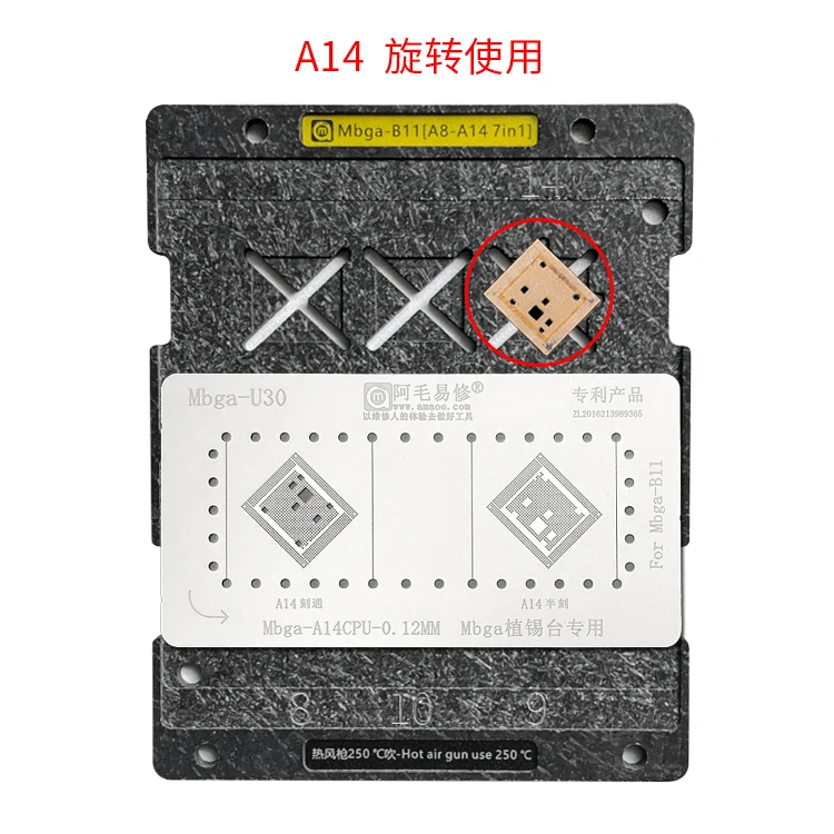 Описание:AMAOE Mbga-B2 Mbga-B4 Mbga-B11 Mbga-B1 для iPhone 11 12 серии A8 A9 A10 A11 A12 A13 CPU позиционирование пластина стальная сетка установка Олово удалить клей платформа фиксированное приспособление