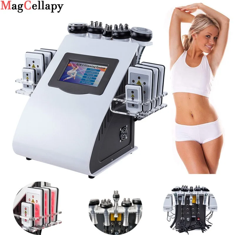 6 in 1 40k Ultrasonic liposuction Cavitation 8 Pads LLLT Cavi Lipo Laser Slimming Machine Vacuum RF Skin Care Salon Spa Home Use