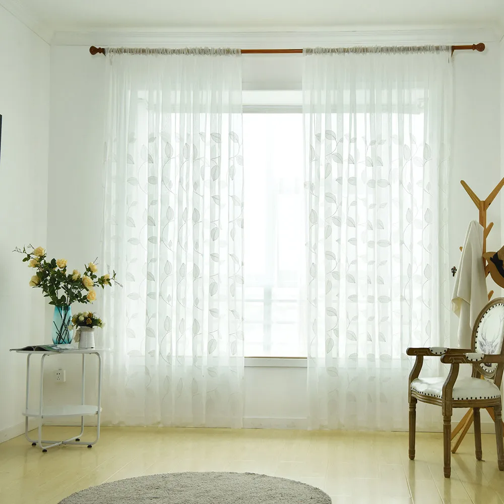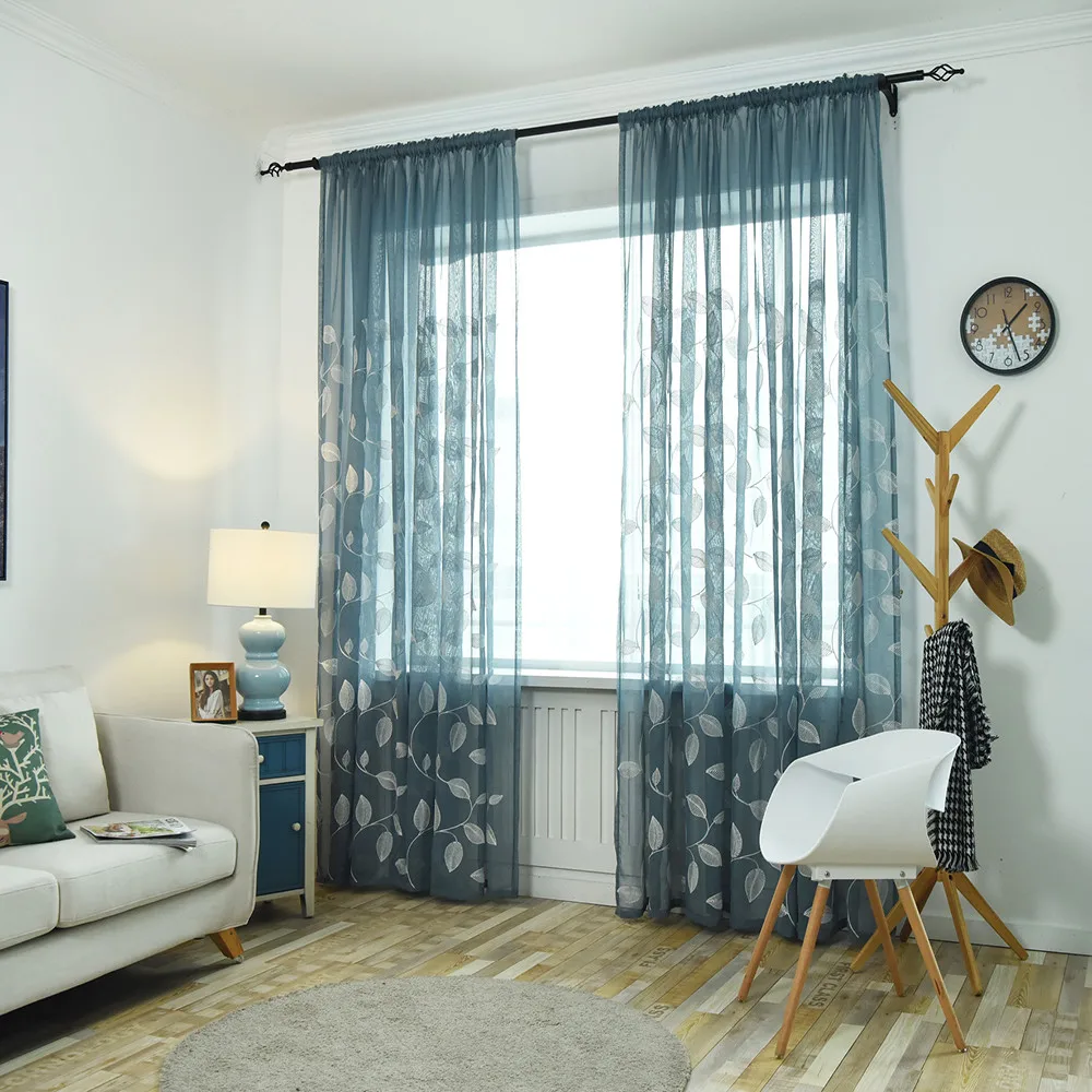 Элегантные современные тюлевые шторы для гостиной, спальни, кухни, прозрачные шторы с зелеными листьями для окон, тюлевые занавески, драпировка