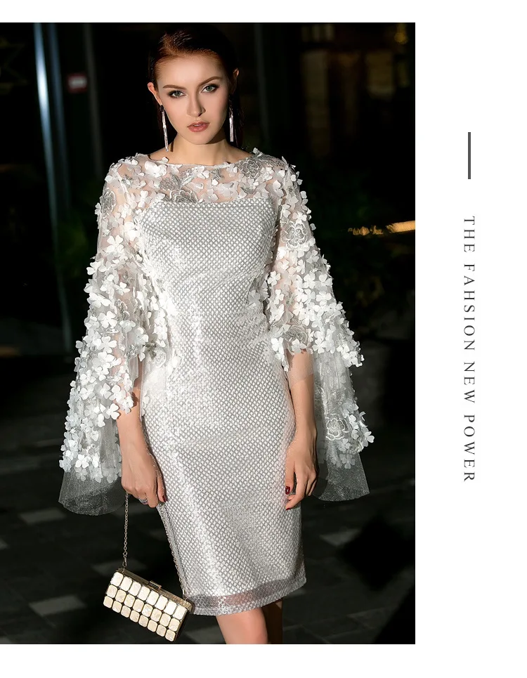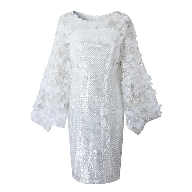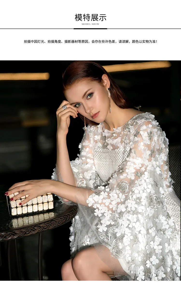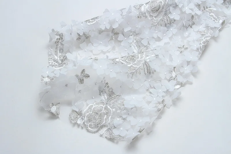 Темпераментное вечернее платье с блестками женское белое вышивкой и трехмерным