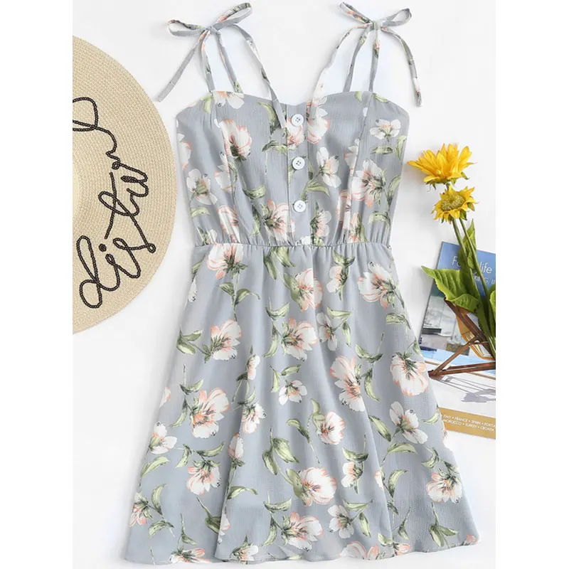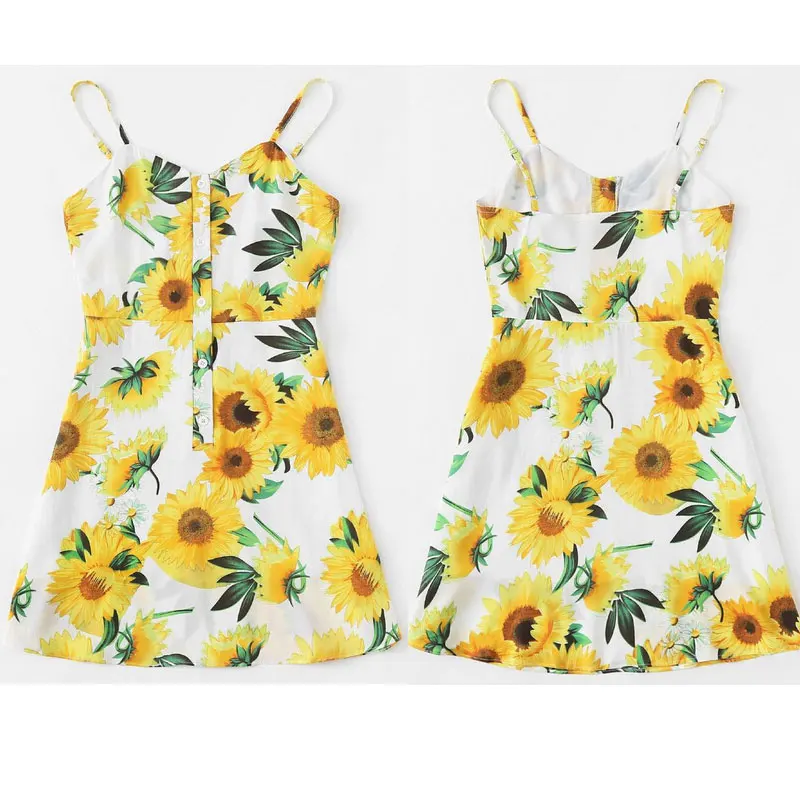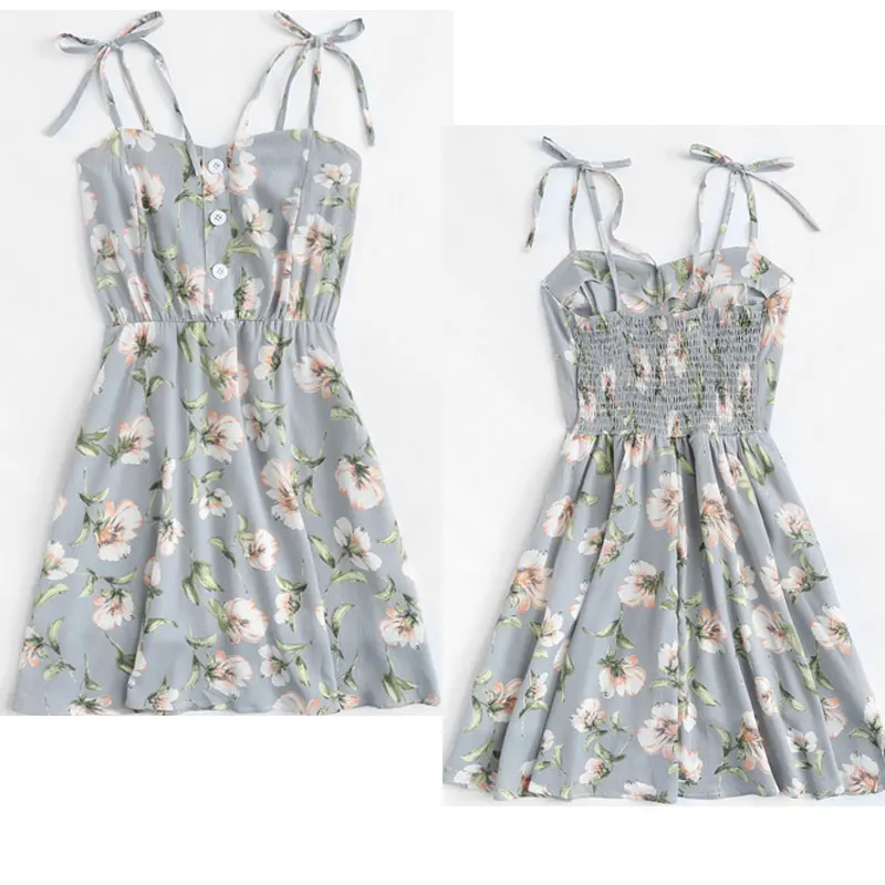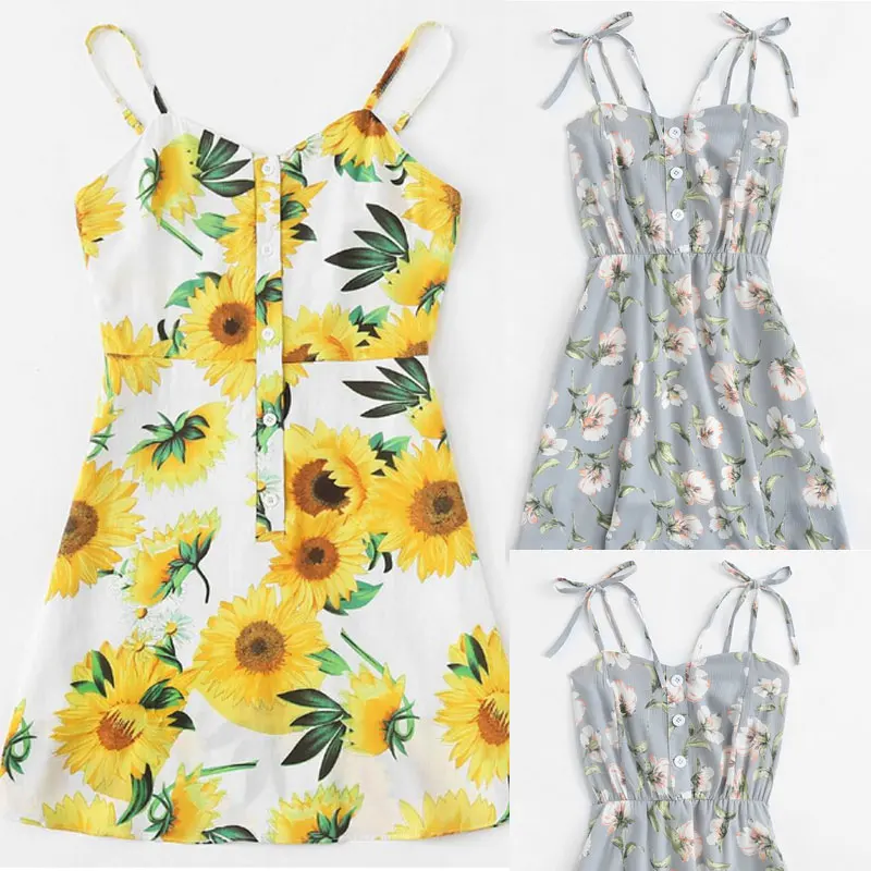 Модное женское платье с открытыми плечами, на пуговицах, с цветочным принтом, летние вечерние хлопковые мини-платья без рукавов