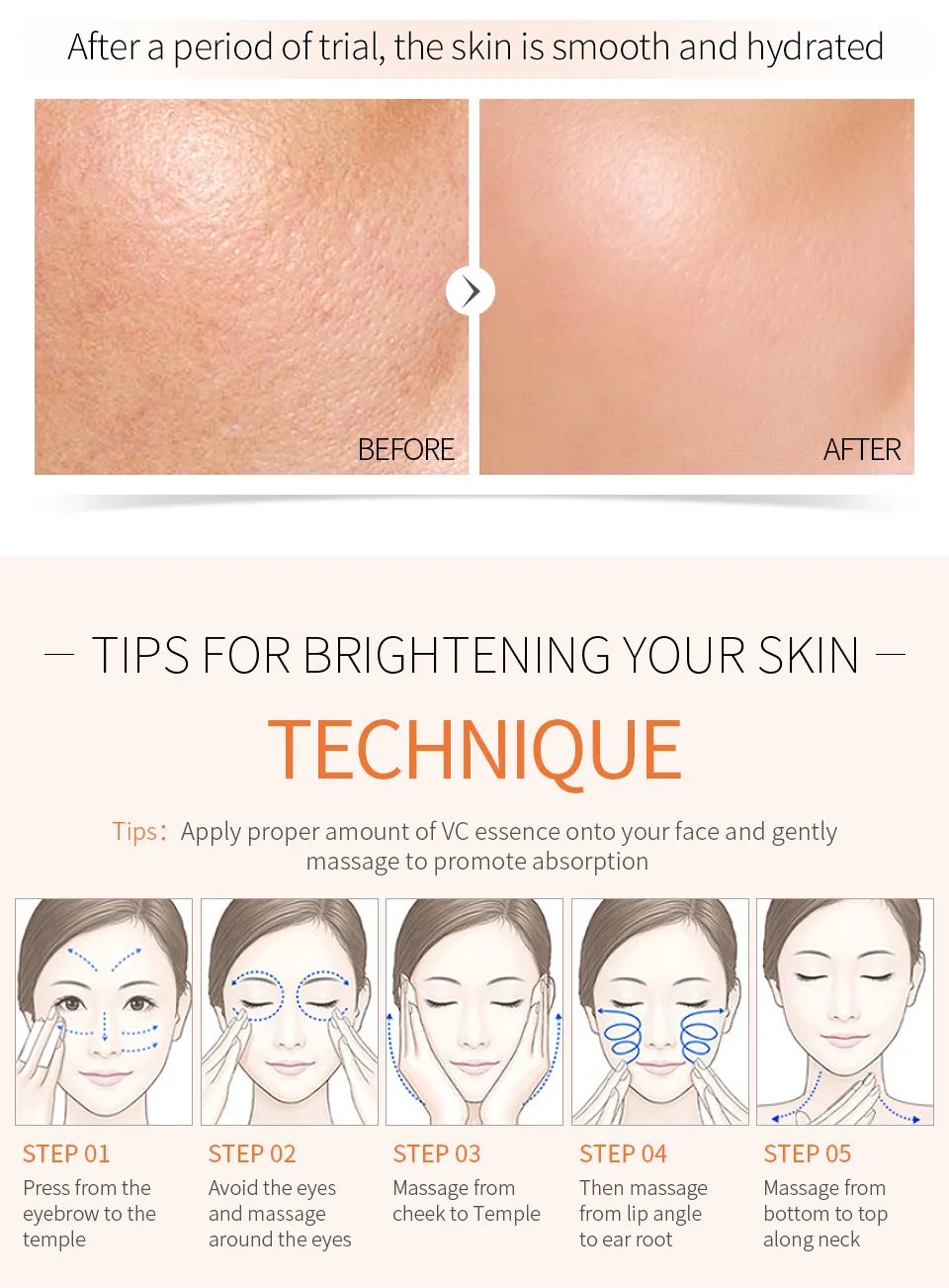 Витамин С Сыворотка гиалуроновая кислота увлажняющая отбеливающая безупречная ампула уход за кожей colageno лица против акне poros усадочная эссенция