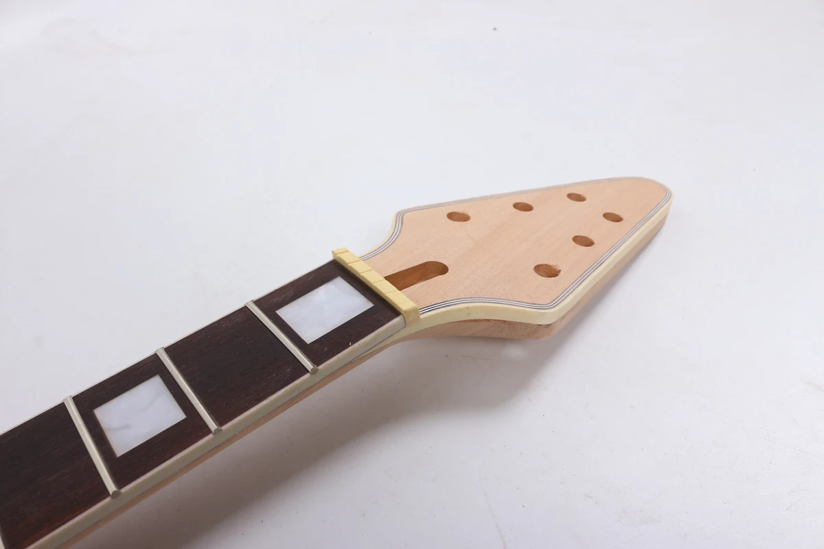 Особенности шеи электрогитары: Древесина шеи: красное дерево Древесина грифа: розовое дерево Отделка: незавершенной Шкала Длина: 24-3/4 дюйма. Если вам нужна другая длина шкалы, пожалуйста, свяжитесь со мной. Ширина гайки: около 42 мм Ширина в области пятки: 56 мм +-0,5 мм Лады: 22 никель/Серебро Лады Стропильная штанга регулировки: на складе или внизу