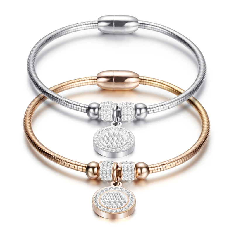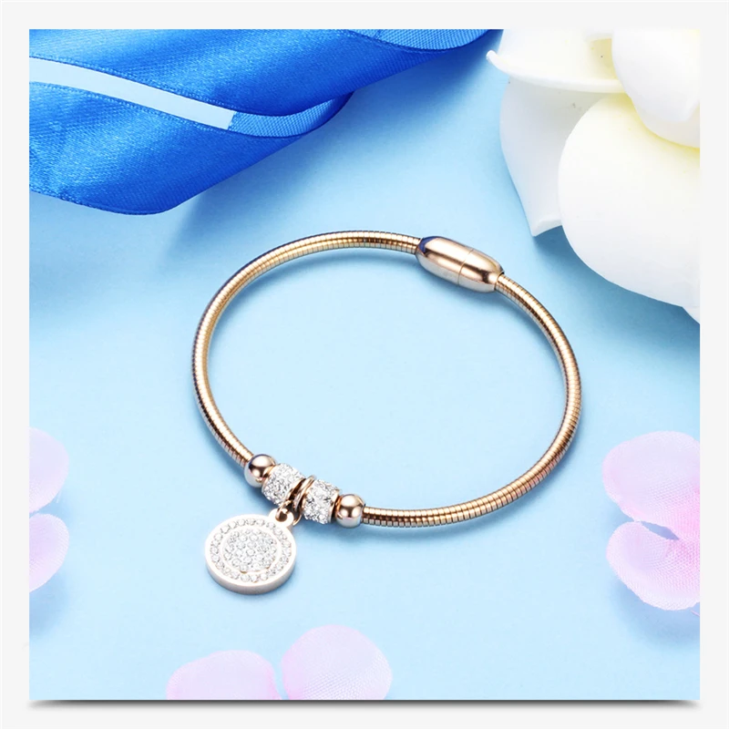316L браслет из нержавеющей стали монета магнит застежка цвета розового золота цепь Кристальные браслеты для женщин ювелирные изделия C4