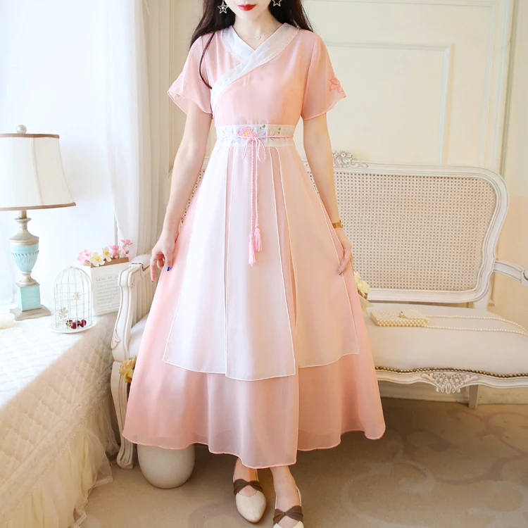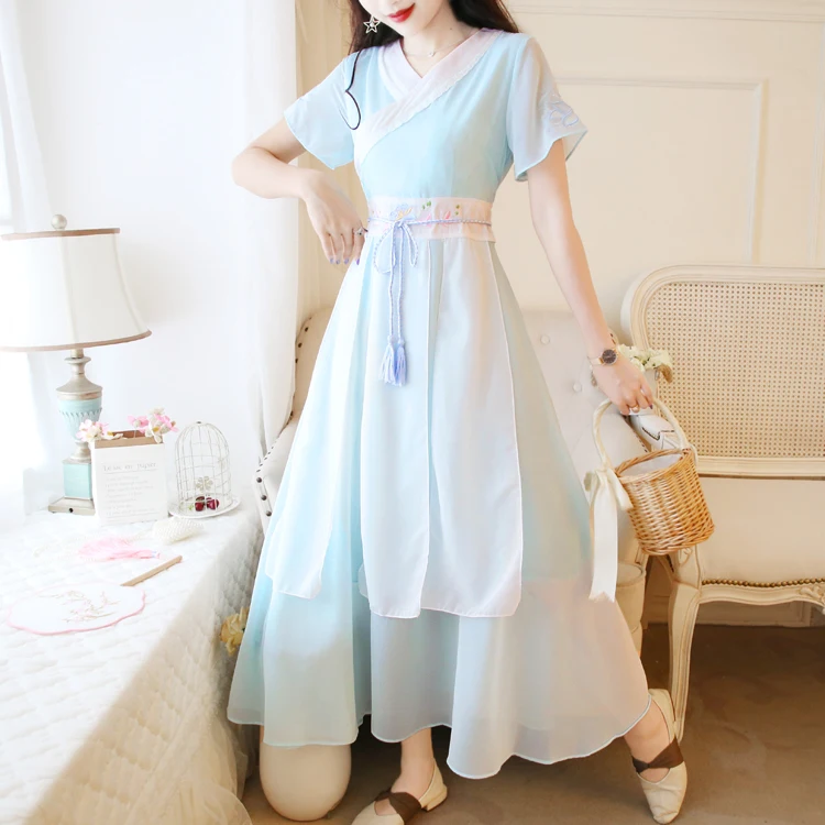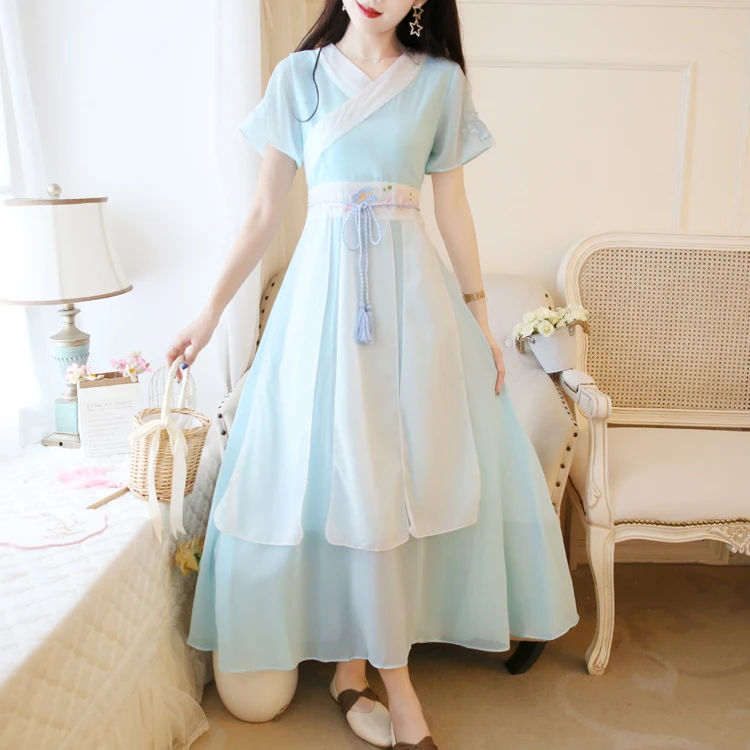 Новинка 2020, модное женское платье Hanfu, платья в китайском стиле, летнее платье с вышивкой