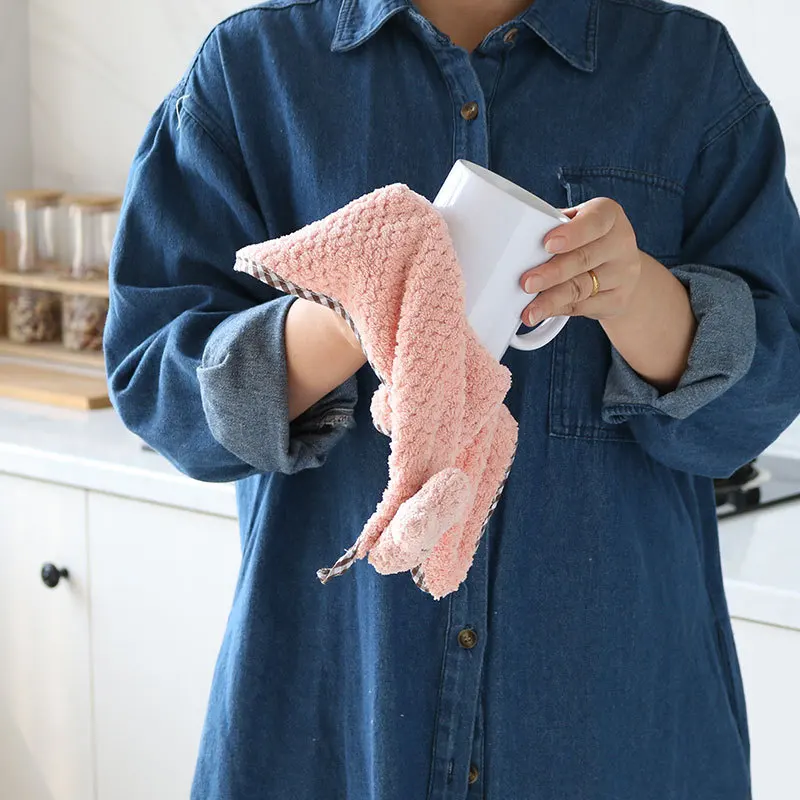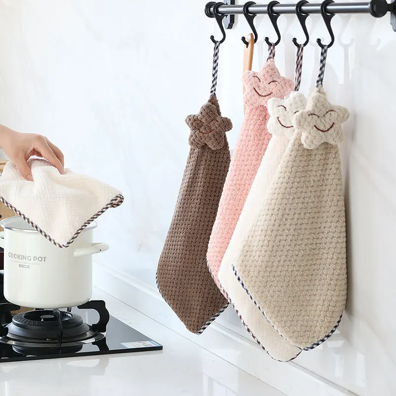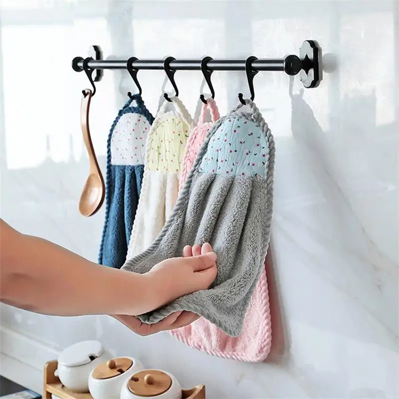Microfiber Coral Fleece Hand Towel with Convenient Hanging Loop
