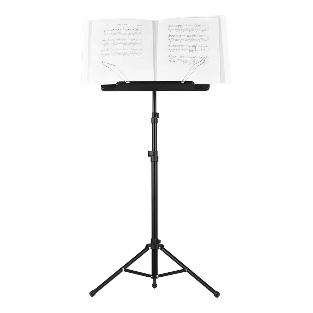 This foldable music stand holds music sheets and scores in a comfortable position for the performer to easily read.