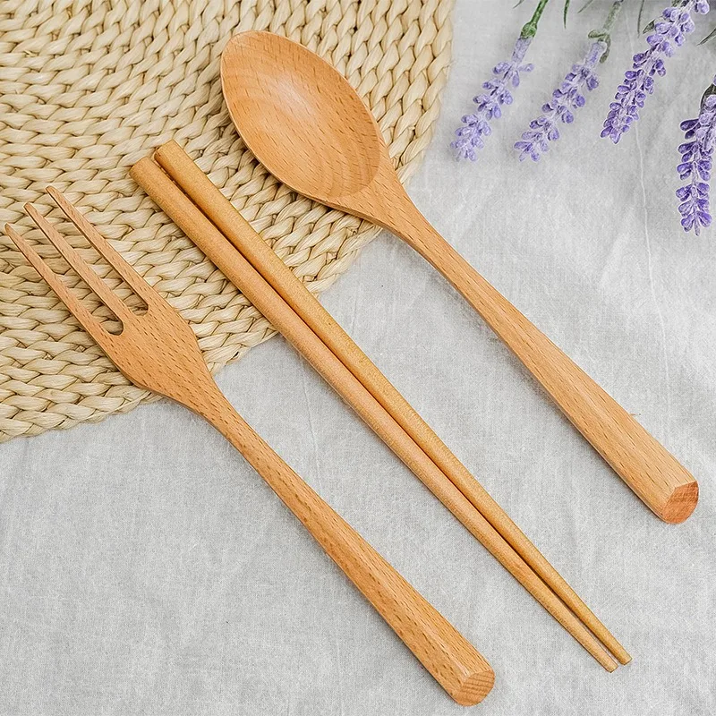 Горячая портативная Экологичная посуда набор деревянных столовых приборов вилка ложка многоразовые палочки для еды деревянная посуда для путешествий