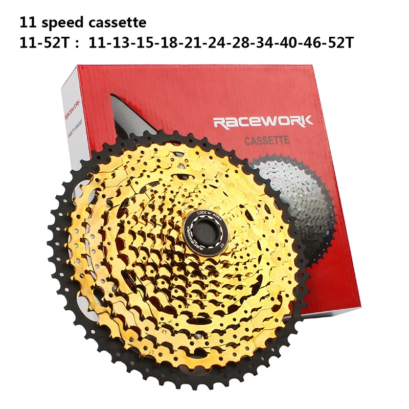 Номер модели: CS-M9011 Цвет: золотой, черный/серебристый, черный/черный 11-скоростная Совместимость с Shimano Dyna-Sys Подходит для 11-скоростного корпуса freehub Серия: RACEWORK CS-M9011 Совместимая деталь для велосипеда XT SLX Количество зубцов на звездочках 11-46T: Встроенный 11-50T: Встроенный 11-52T: Встроенный Вес 11 скоростей 46T Золотой Черный: 594 г 11 скоростей 50T серебристо-черный: 645 г 11 скоростей 50T золотой черный: 660 г 11 скоростей 50T черный: 641 г 11 скоростей 52T серебристо-черный: 690 г 11 скоростей 52T Золотой Черный: 700 г 11 скоростей 52T черный: 687 г