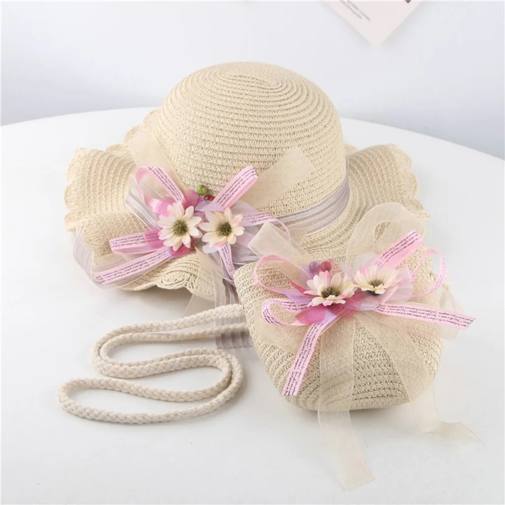 Шляпа для маленьких девочек 2020, топ, сумка для девочек, летний детский комплект для маленьких девочек с цветочным принтом и рюшами, соломенная Кепка в рыбацком стиле + сумка в цветочек, Bebita
