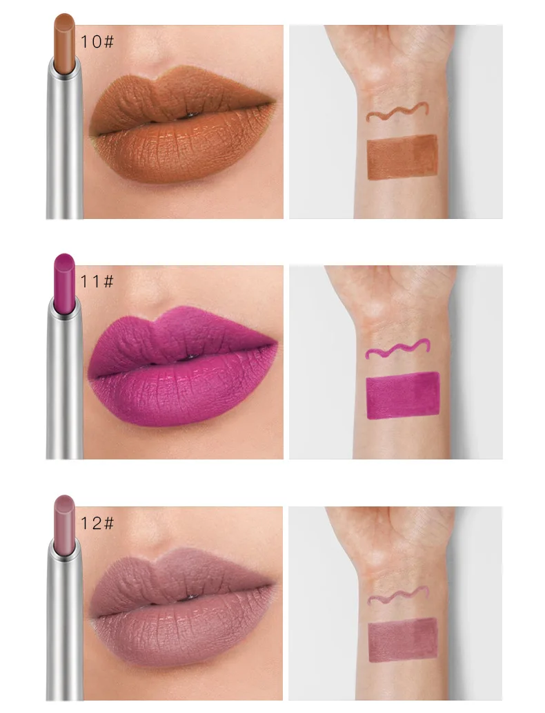 Технические характеристики: Портативный размер, легко носить с собой Водонепроницаемый, легко носить, натуральный Длительный период увлажнения и удержания цвета Хорошая адгезия, может сохраняться в течение длительного времени яркие цвета Высокая концентрация цветового коэффициента, подчеркивает трехмерную губу Посылка включает в себя: 1 * Карандаш для губ