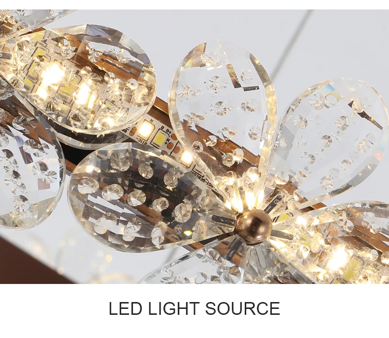 1. Теплый белый, холодный белый и три цвета не имеют дистанционного управления. 2. Три цвета включают теплый белый, холодный белый и естественный светильник. Нажмите на настенный выключатель дома. Когда выключатель не нажимается один раз, прибор изменит цвет (теплый белый, холодный белый или естественный светильник). Примечание: цвет светильника не будет сохранен перед установкой. 3. Только "диммируемая" имеет пульт дистанционного управления. 4. Тип кристалла: пузырьковый кристалл или прозрачный кристалл 5. Материал: железо + алюминий 6. Цвет корпуса лампы: золотой или коричневый
