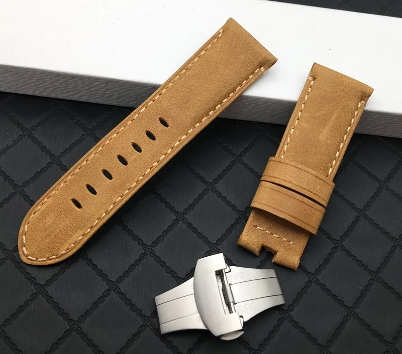 24 мм итальянский Ретро crazy horse ремешок для часов из натуральной кожи ремешок Бабочка Пряжка Для Panerai ремень с гравировкой инструменты