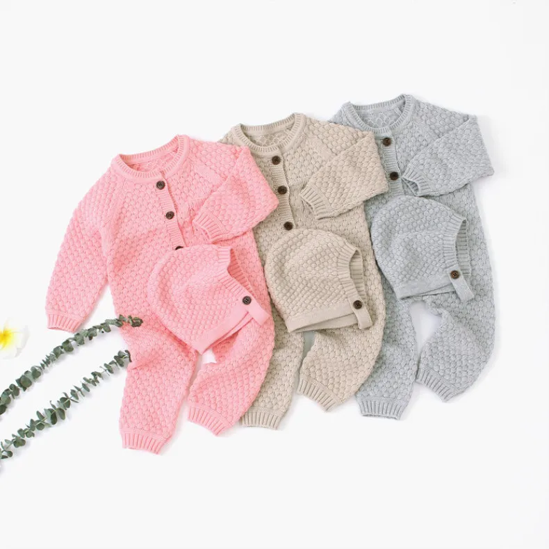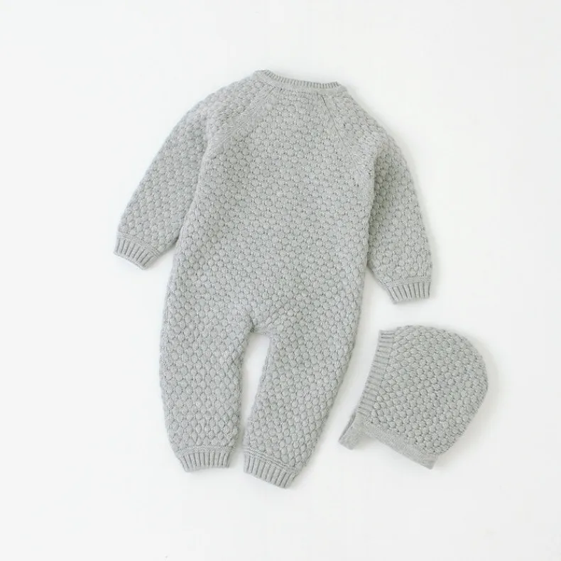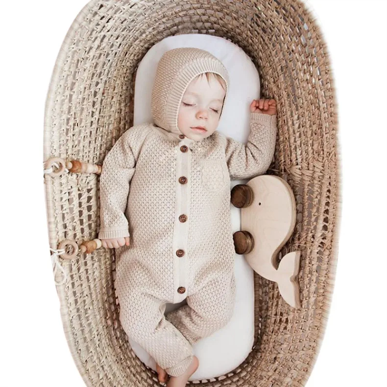 Осенняя одежда унисекс для малышей модные однотонные вязаные комбинезоны с длинными рукавами для новорожденных мальчиков и девочек от 0 до 18 месяцев, детские комбинезоны