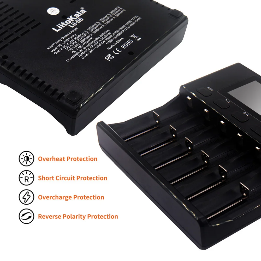 Множественные функции защиты от перезарядки, переразряда, короткого замыкания и может автоматически определить сломанный/бракованный аккумулятор (не будет заряжать плохие батареи). Зарядка при постоянном напряжении и токе.
