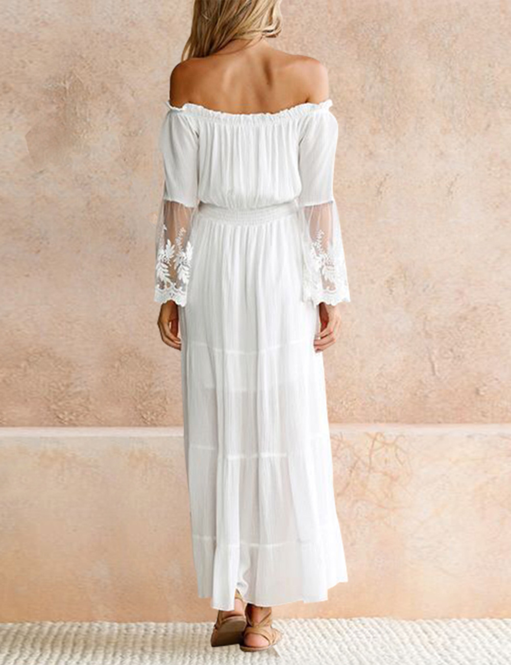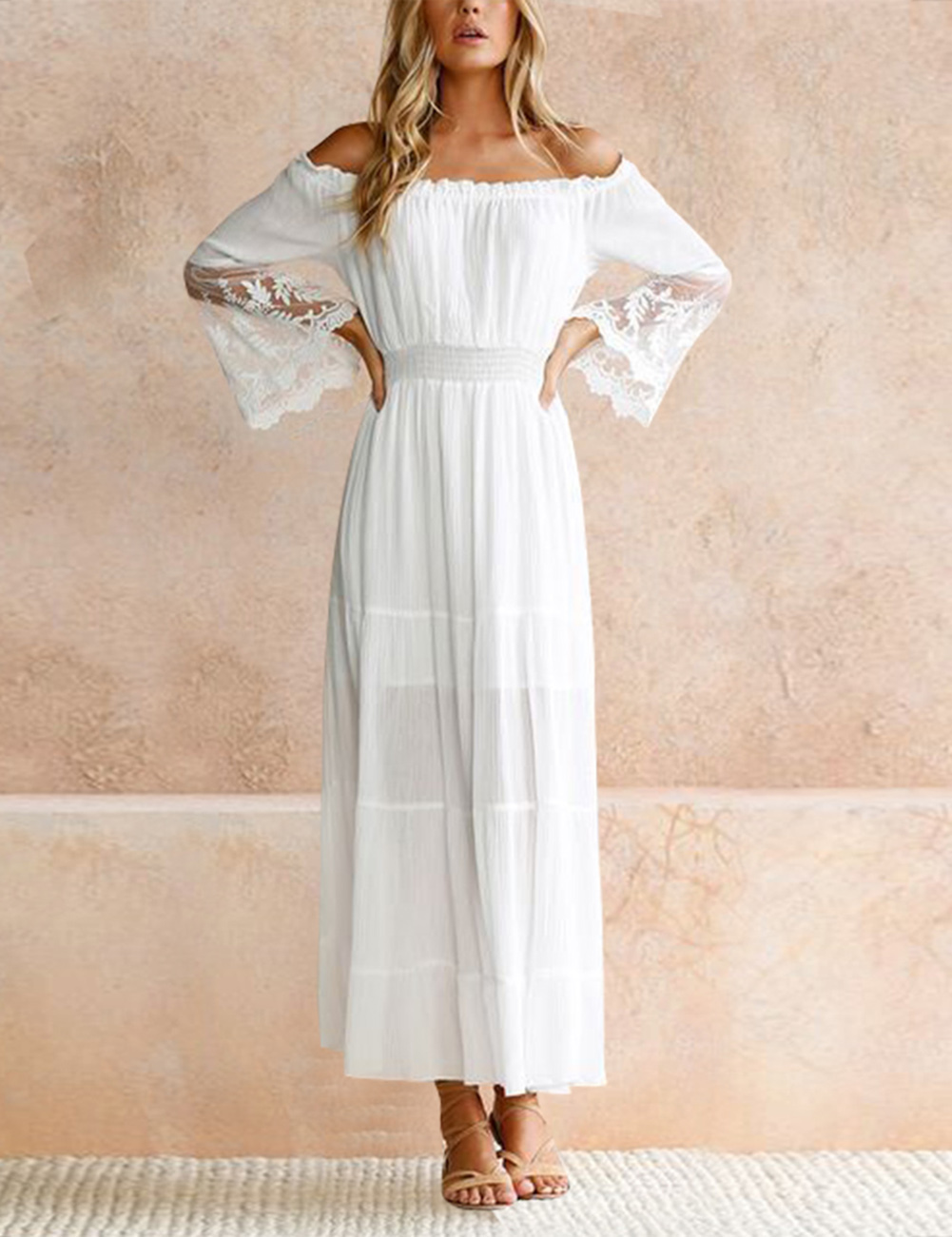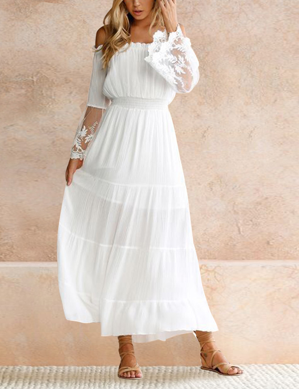 Женское кружевное длинное платье макси в стиле бохо с открытыми плечами идеально подходит для повседневной носки, свидания, вечеринки, клуба, отдыха и пляжа.