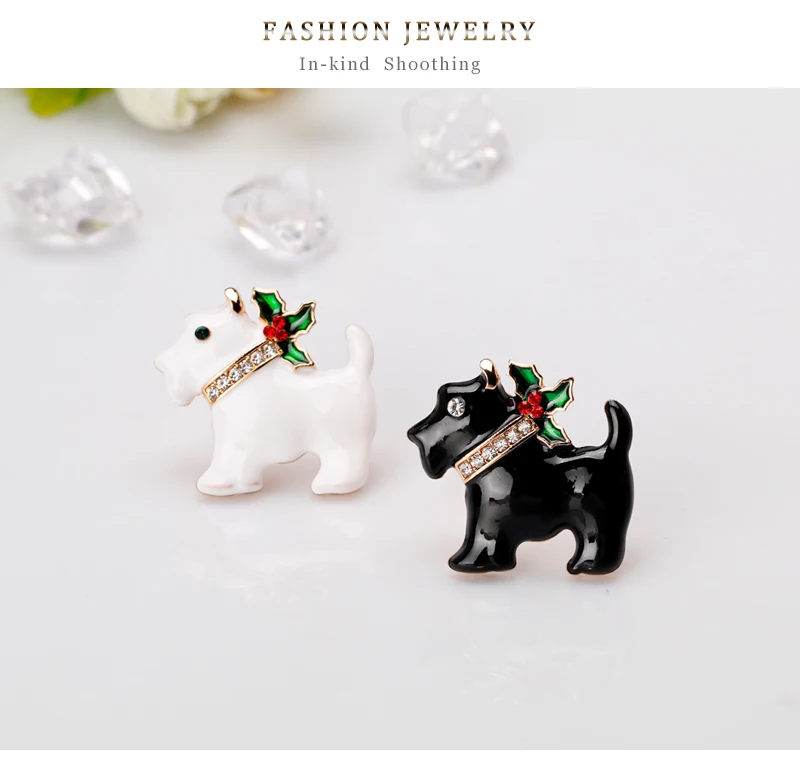 Наименование товара: черно-белая эмалированная Рождественская брошь для собаки для женщин и детей, брошь со стразами, булавки, ювелирные аксессуары