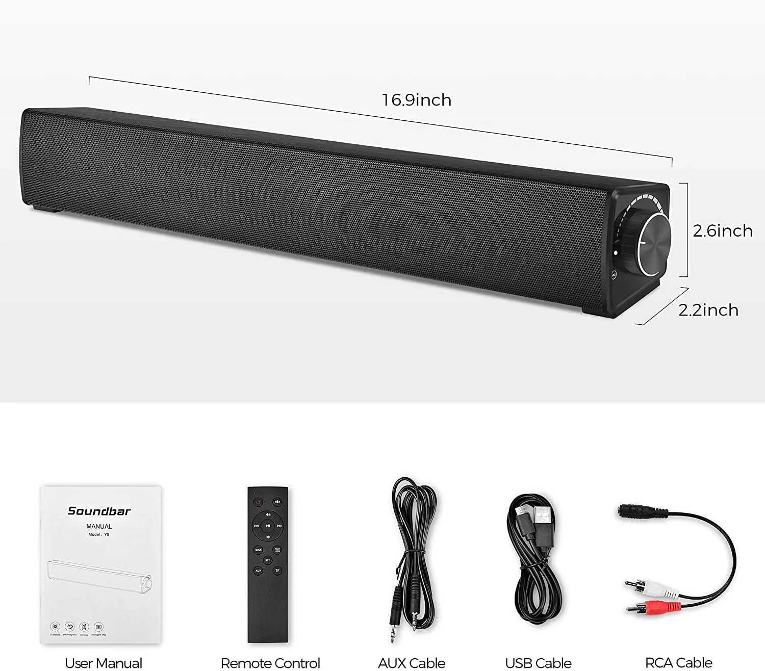 1 * Саундбар ПК, 1 * пульт дистанционного управления, 1 * Руководство по эксплуатации, 1 * USB кабель для передачи данных, 1 * кабель AUX, 1 * кабель RCA. Если у вас есть какие-либо вопросы, пожалуйста, свяжитесь с нами.