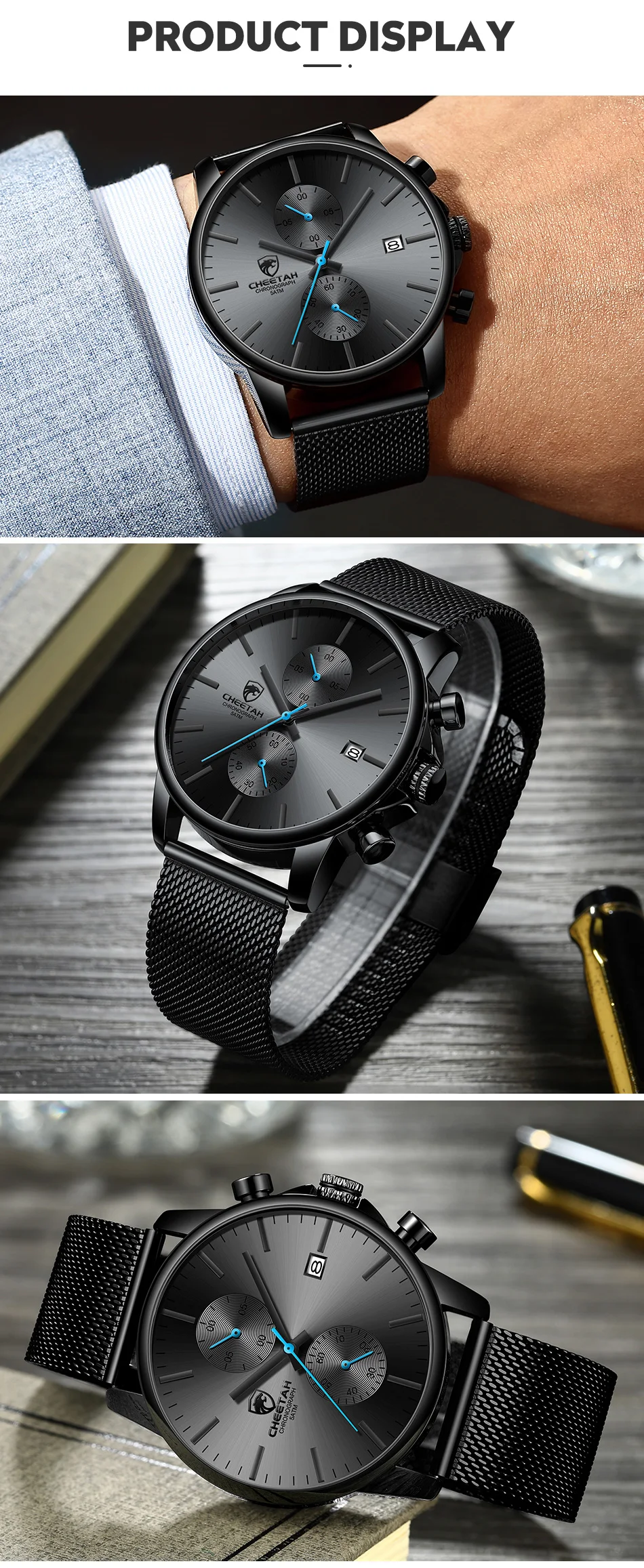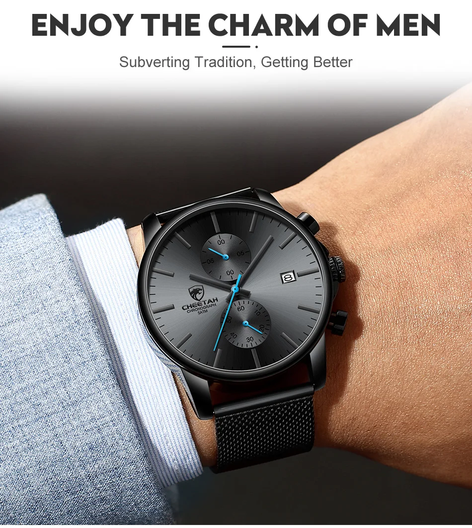 Модные Роскошные Кварцевые часы CHEETAH для мужчин, повседневные спортивные мужские часы с хронографом, водонепроницаемые наручные часы с датой, мужские часы