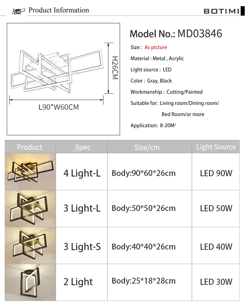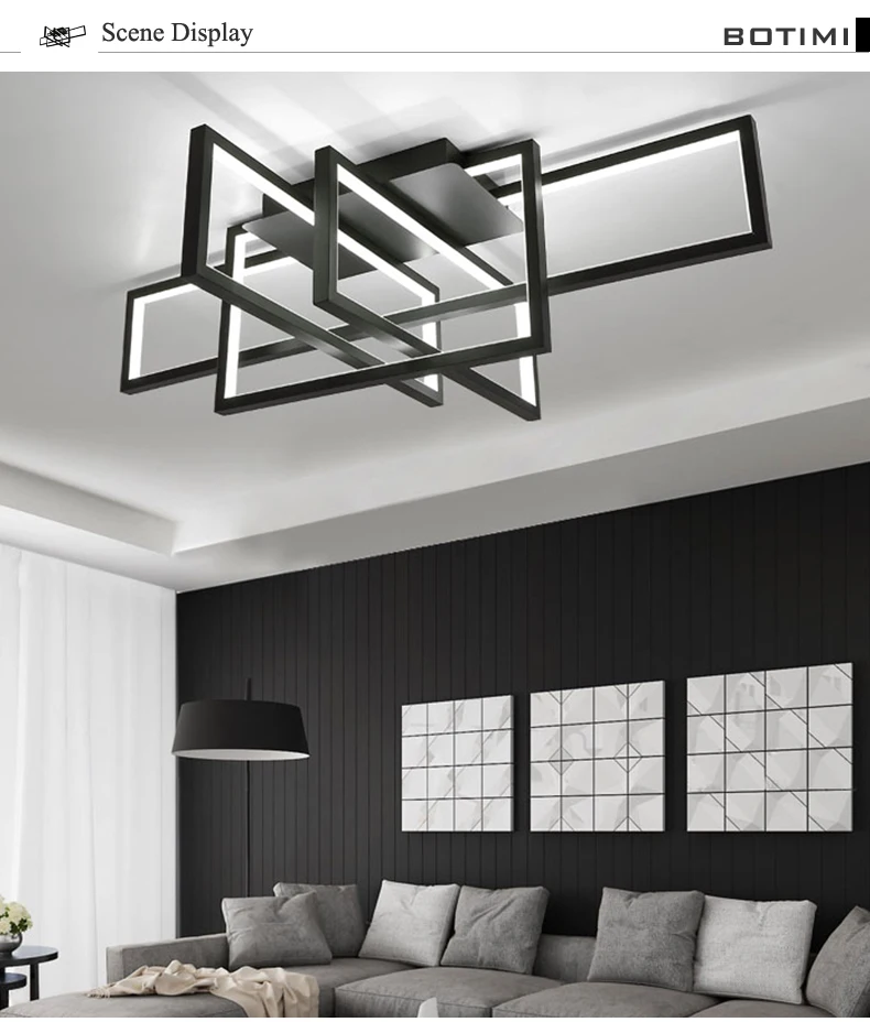 BOTIMI, современный квадратный светодиодный потолочный светильник для гостиной, черный, с геометрическим рисунком, для спальни, освещение, для поверхностного монтажа, для коридора, для дома, освещение