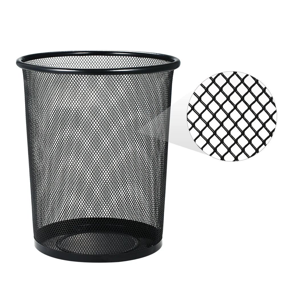 Black Large Mesh Metal Wastebasket Garbage Waste Basket Bin Trash Can for Office Home 7.5*9*10.6In Office Waste Basket For Paper