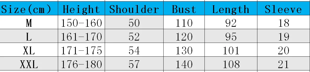 Материал: полиэстер + хлопок Примечание: 1. Цвет может незначительно отличаться из-за эффекта лампы и настроек монитора. 2. При ручном измерении возможна погрешность в 2-3 см, пожалуйста, поймите. 3,1 дюймов = 2,54 см, 1 см = 0,39 дюйм (ов) Если вы не знаете, какой размер выбрать, пожалуйста, свяжитесь с нами, мы сообщим вам в течение 24 часов! Пожалуйста, проверьте нашу таблицу размеров перед размещением заказа. Мы искренне надеемся, что вы можете купить одежду, которая полностью подходит, пожалуйста, проверьте таблицу размеров ниже: (± 1-3 см отличается из-за ручного измерения)