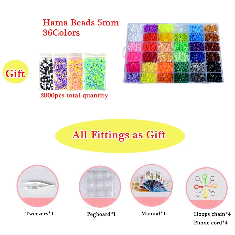 Бусины DIY Perler включают: Всего 36 цветов, 9000 шт бусин (5 мм), коробка для хранения Прозрачная 1 шт,