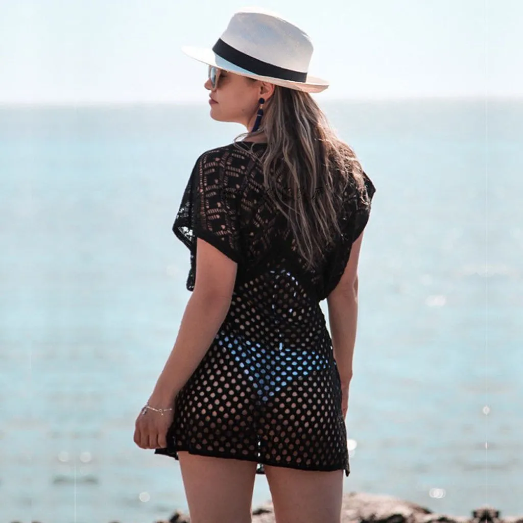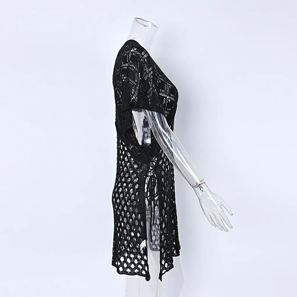Женское летнее пляжное однотонное вязаное платье с v-образным вырезом, Пляжное Платье