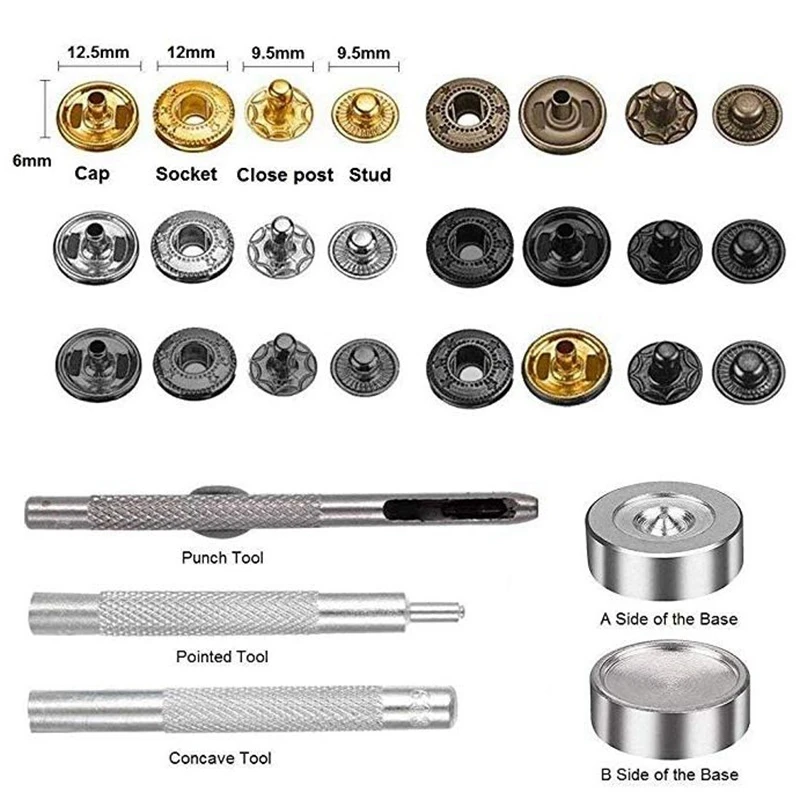 Button Sets Metal No Sewing Snap Press Stud Leather Craft Bag Coat Clothes Fastener Rivet Popper With Install Tool F | Дом и сад