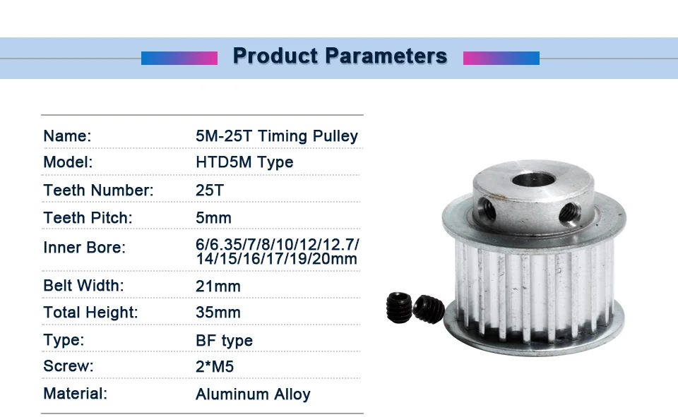 HTD5M Timing Pulley 25T Gear Pulley 21mm Belt Width 6/6.35/7/8/10/12/14/15/20mm Bore 5mm Teeth Pitch 25Teeth Timing Belt Pulley