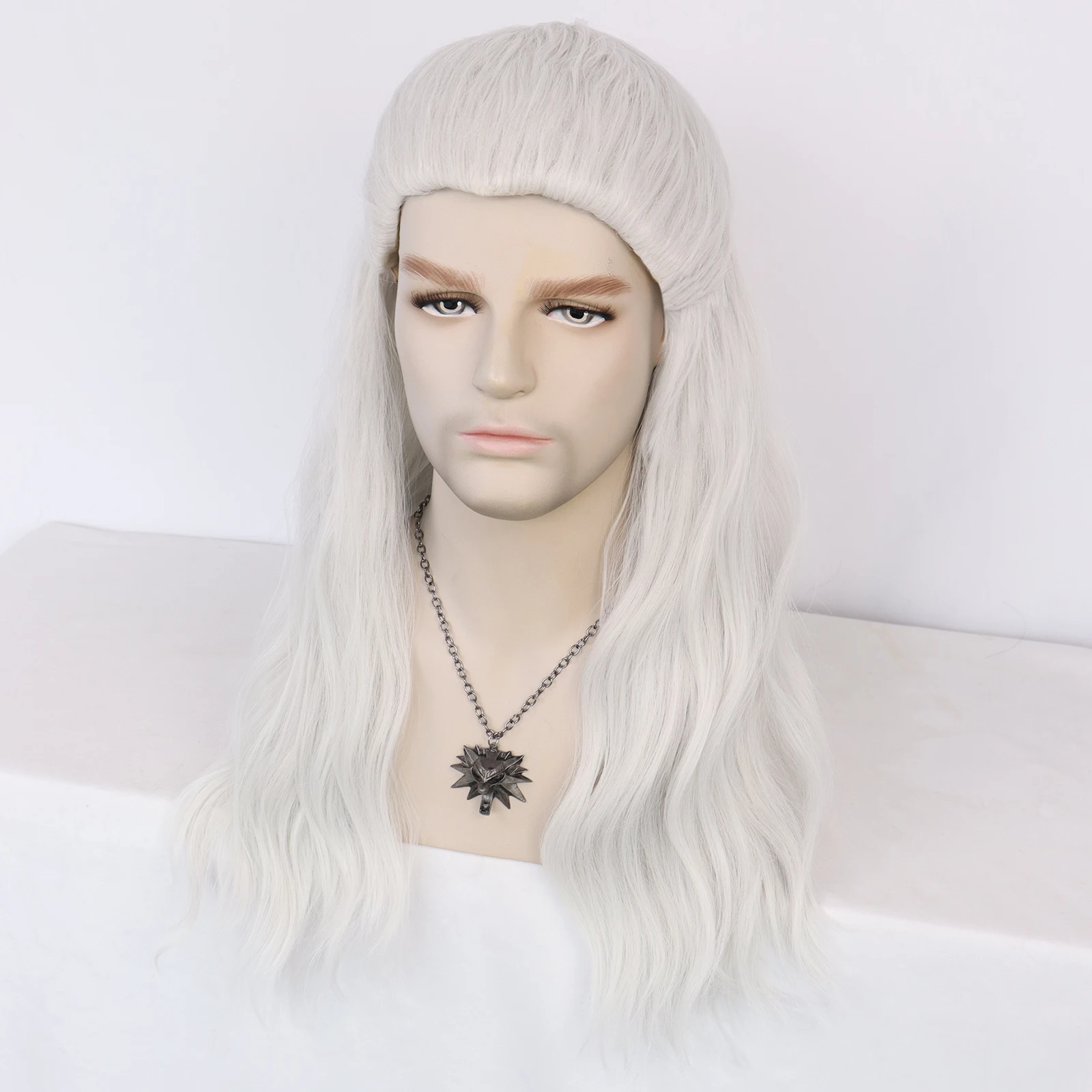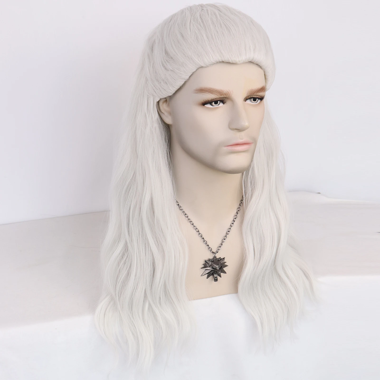 ANOGOL синтетические парики для косплея Геральт ривии Длинные волны воды серебристо-белый костюм парик белые волнистые волосы для мужчин Хэллоуин Вечерние