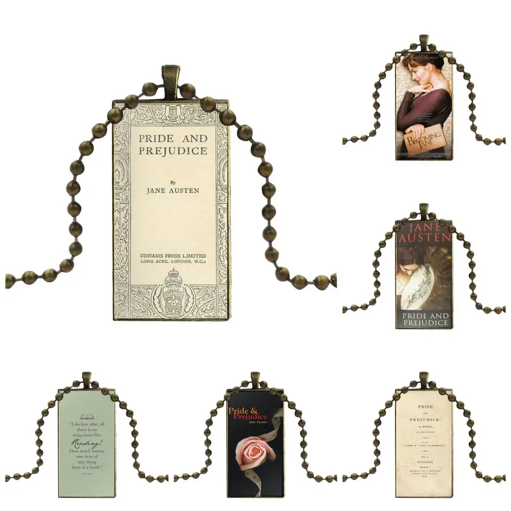 Fashion Glass Cabochon Pendant Rectangle Necklace Choker Jewelry For Girls Wholesale Pride And Prejudice Jane Austen | Украшения и