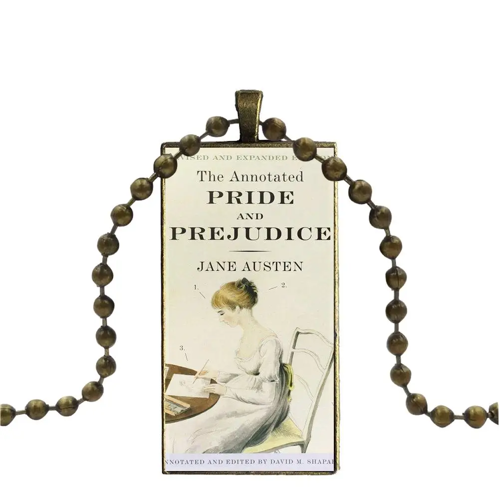 Fashion Glass Cabochon Pendant Rectangle Necklace Choker Necklace Jewelry For Girls Wholesale Pride And Prejudice Jane Austen