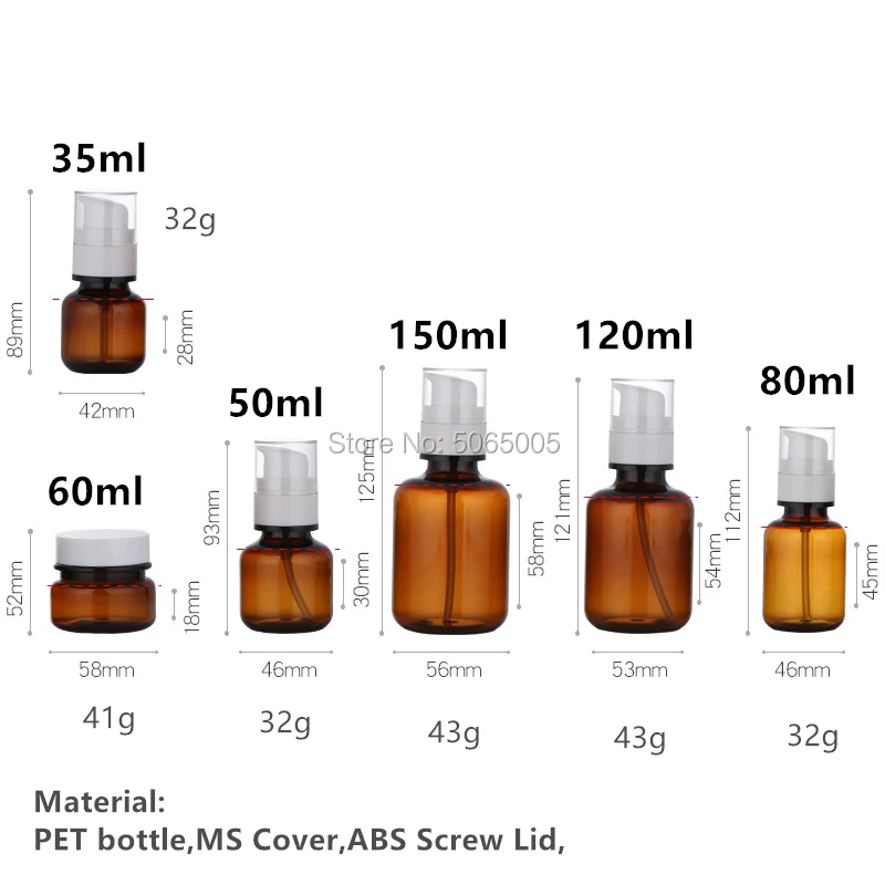 35 мл 50 мл 80 мл 120 мл 150 мл янтарная пустая бутылка с ароматом Бостонская круглая помпа для очистки лосьона пластиковые толстые бутылки из ПЭТ
