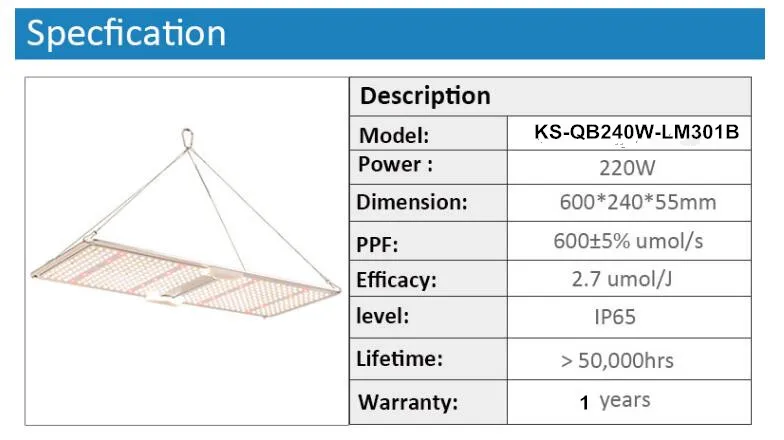 2. Белая основа для более легкого наблюдения взрослых.3. Опытный Сертифицированный светильник для более здорового роста растений.4. Отличная производительность для veg и bloom5. Источник питания с регулируемой яркостью6. Длина: 600 мм (23,6 дюйма), ширина: 240 мм (9,5 дюйма).7. Входное напряжение: 100 ~ 277 В.8. Срок службы: 54 000 часов,