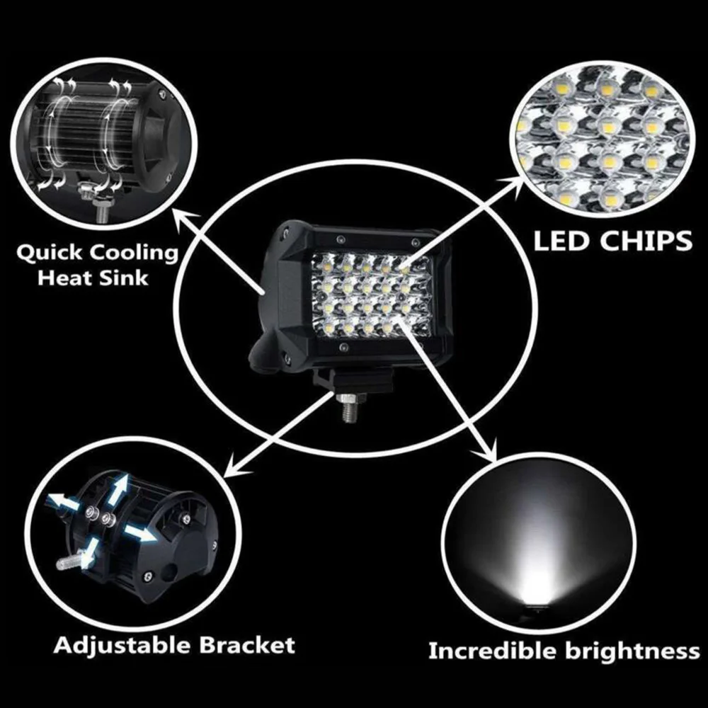 *72W 4Inch LED Combo Work Light Spotlight Off-road Driving Fog Lamp Truck Boat
