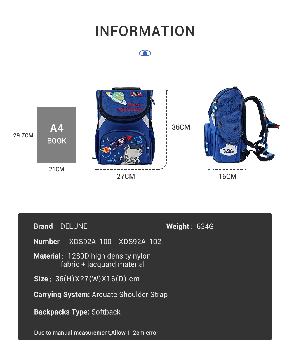 Размер школьной сумки: 28*15*36 см, вес: около 860 г
