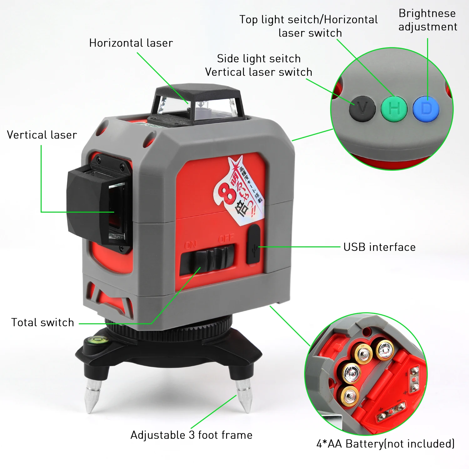1 × 3D лазерный уровень 1 × основание штатива 1 х тканевый мешок 1 ремешок Линия 1xusb 1 X Инструкция