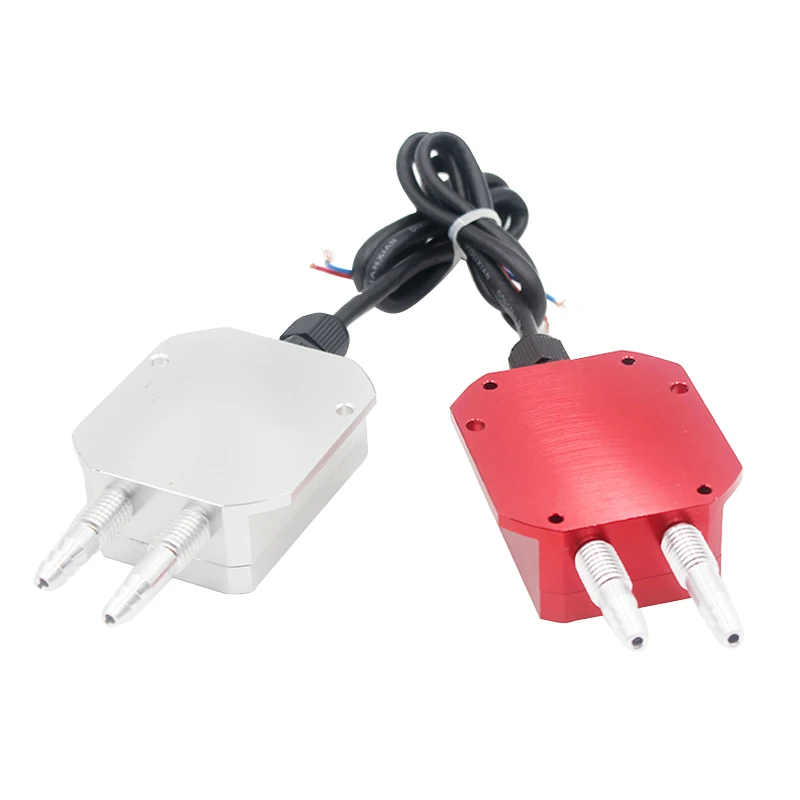 <2>. Корпус изготовлен из алюминиевого сплава. Двумя интерфейсами давления являются резьба M10 и структура петуха. (Клиент может выбрать размер интерфейсов давления.) Он может быть непосредственно установлен на измерительной трубе или соединен напорной трубой, прост в установке и использовании.